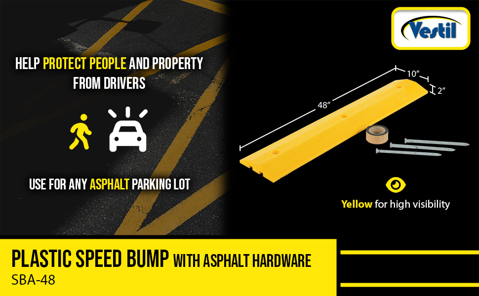 SBA-48 SBA-48Plastic Speed Bump Asphalt Hardware 48 In. x 10 In. x 2 In. YellowCompression Strength Per Square Inch (lb.): 3200