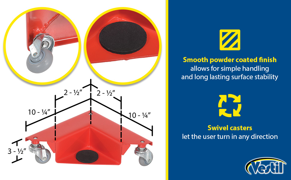 CMD-S-300-4PK CMD-S-300-4PKSteel Corner Mover Dolly 4 Pack 300 Lb. Capacity RedUniform Capacity, Set (lb.): 1200
