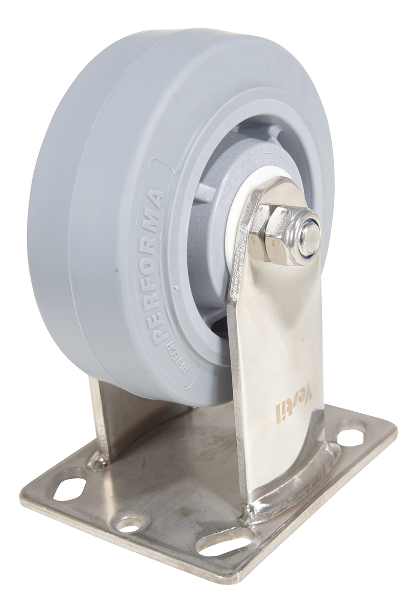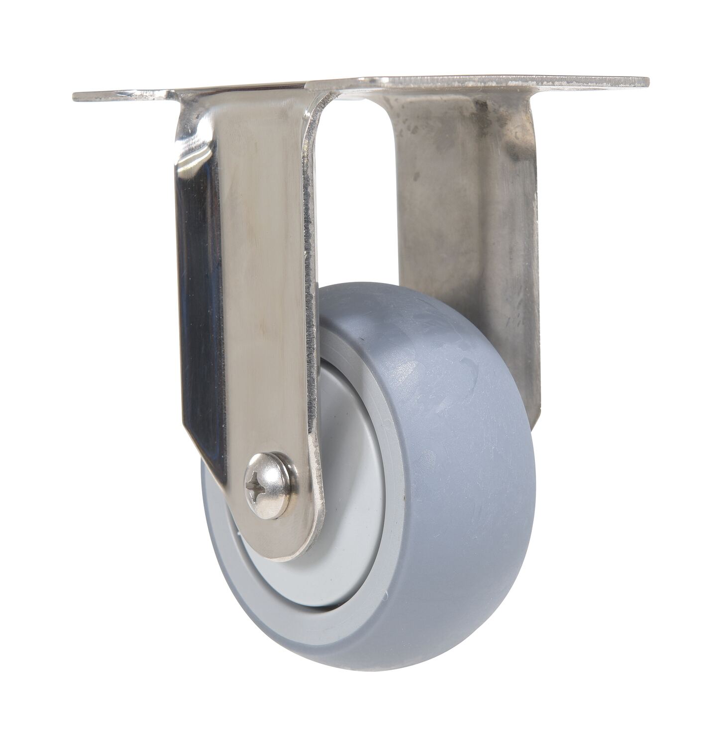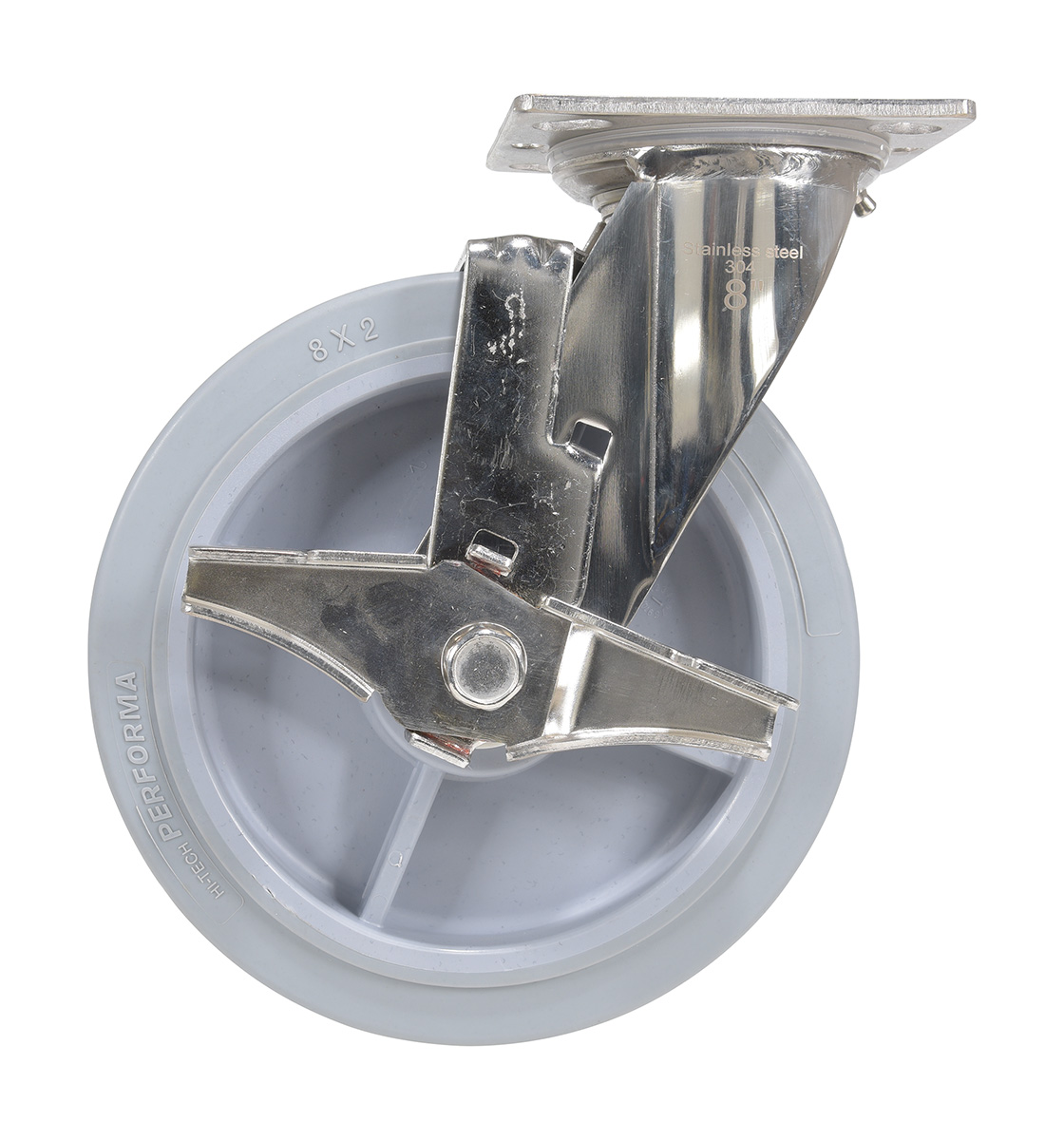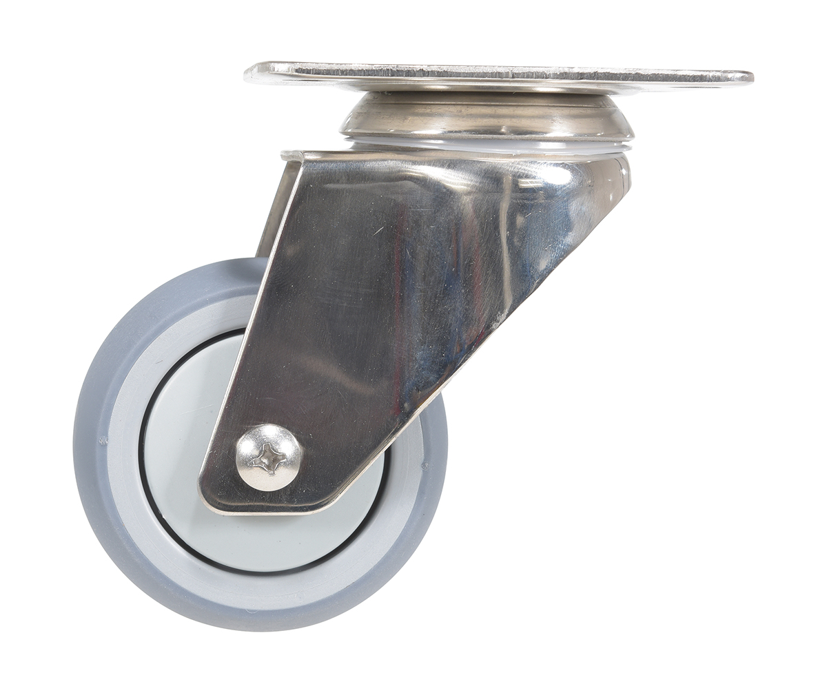 Stainless steel casters are excellent for corrosion resistance. They are ideal for applications where frequent wash downs are a necessity or have exposure to cleaning agents, steam, or other corrosive agents which could rust or corrode. Thermoplastic rubber (TPR) provides a smooth quiet ride with a non-marking tread. It offers great floor preservation and is resistant to most chemicals.