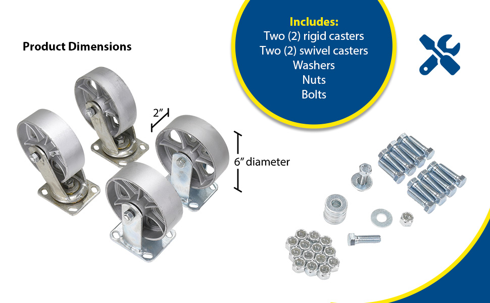 Caster Quantity/Diameter/Width (in.): (4) 6 x 2
