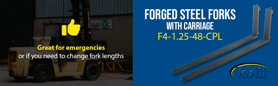 F4-1.25-48-CPL F4-1.25-48-CPLForged Steel Forks with Carriage Pin 48 In. x 1-1/4 In. 3,000 Lb. Capacity BlackUniform Capacity Per Pair (lb.): 3,000