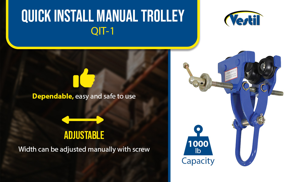 QIT-12 QIT-12Steel Quick Install Manual Trolley 13-5/8 In. x 20-3/16 In. x 20-3/8 In. 12000 Lb. Capacity BlueUniform Capacity (lb.): 12,000