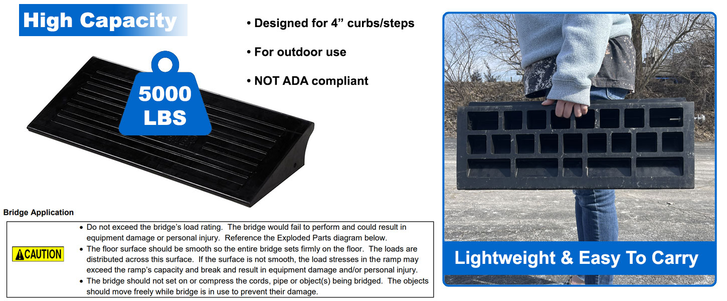 MPR-2410 MPR-2410Plastic Multi Purpose Ramp 10-5/8 In. x 23-13/16 In. x 3-7/8 In. 5000 Lb. Capacity BlackUniform Capacity (lb.): 5000