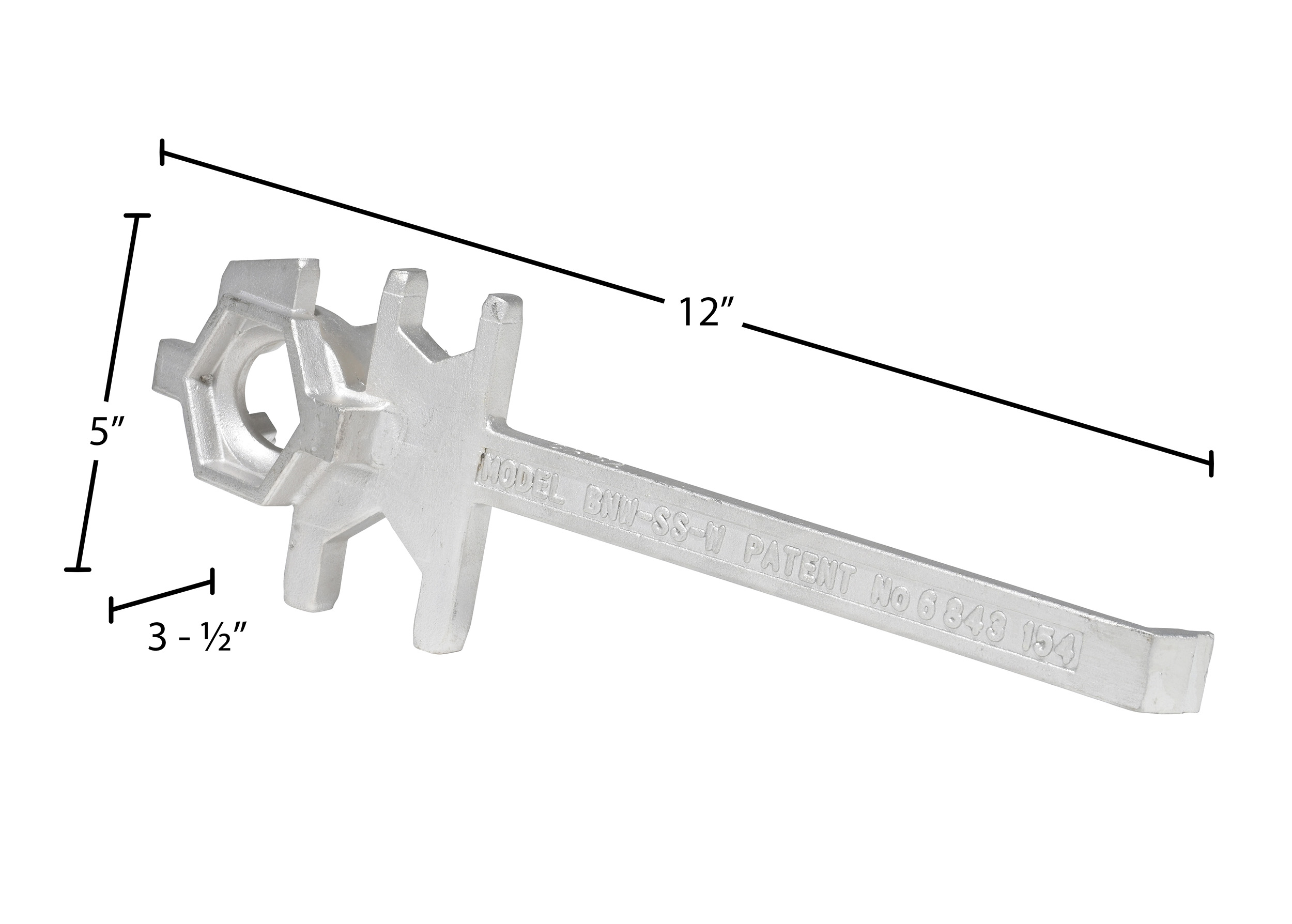 Stainless Steel Drum Bung Nut WrenchThis multipurpose, single ended, cast aluminum drum Bung nut wrench not only opens and closes drum bungs or plugs, they also work as a bung wrench, ring wrench and faucet wrench all in one! Wrench fits all types of industrial drum plugs and bungs in metal or plastic. These wrenches will not bend, break or chip. Patent pending.