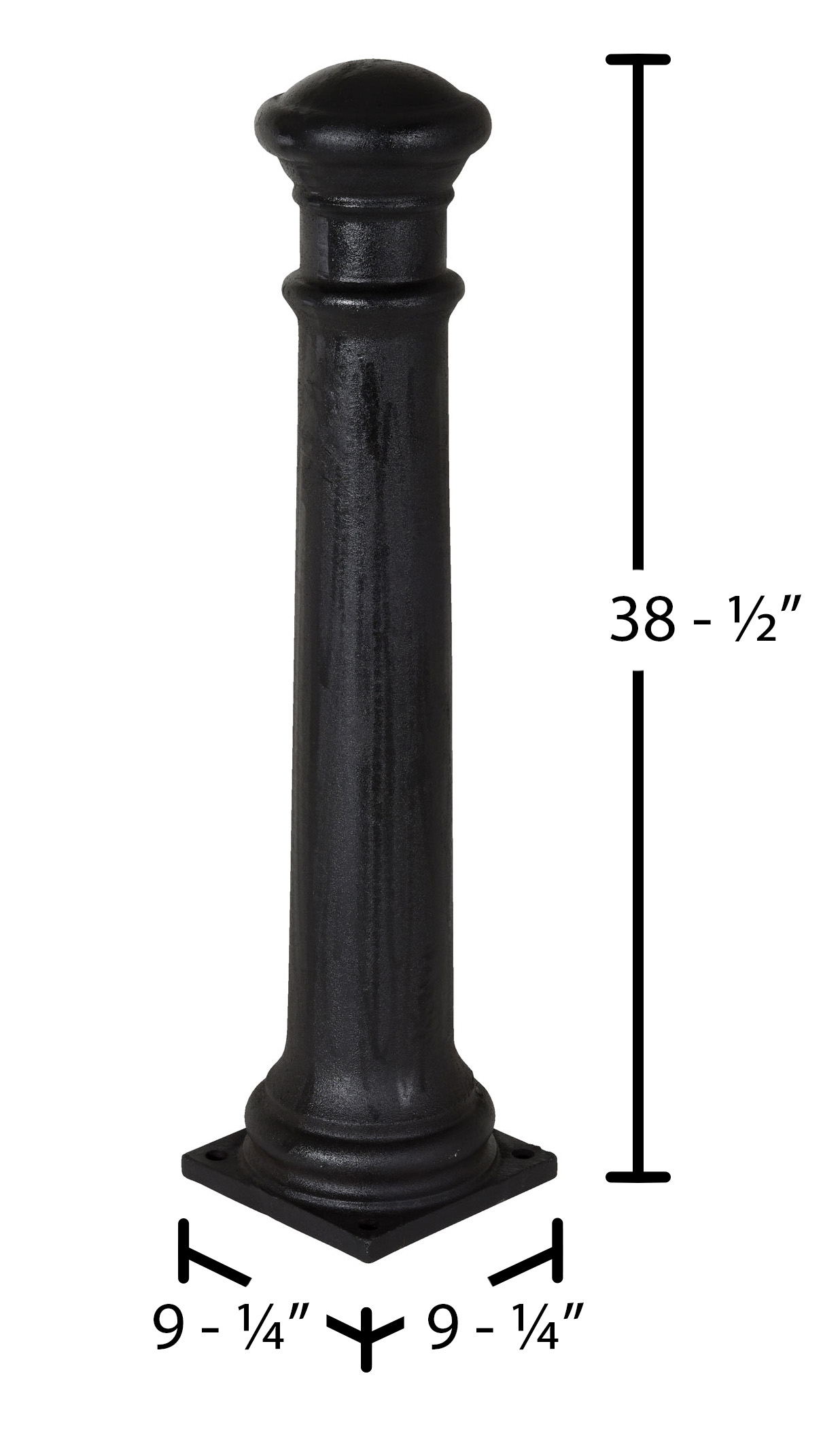 Ductile Iron Decorative Bollard 38 In. x 8 In. BlackThe decorative ductile iron bollards are great for the landscaping design of homes and businesses. The bollards mesh the strength of ductile iron with the time tested beauty and product design of days gone by. The subtle curves, tapers, and flutings give these bollards a sense of belonging and purpose. The bollards mounting capabilities of pour in place to surface mount vary by design.