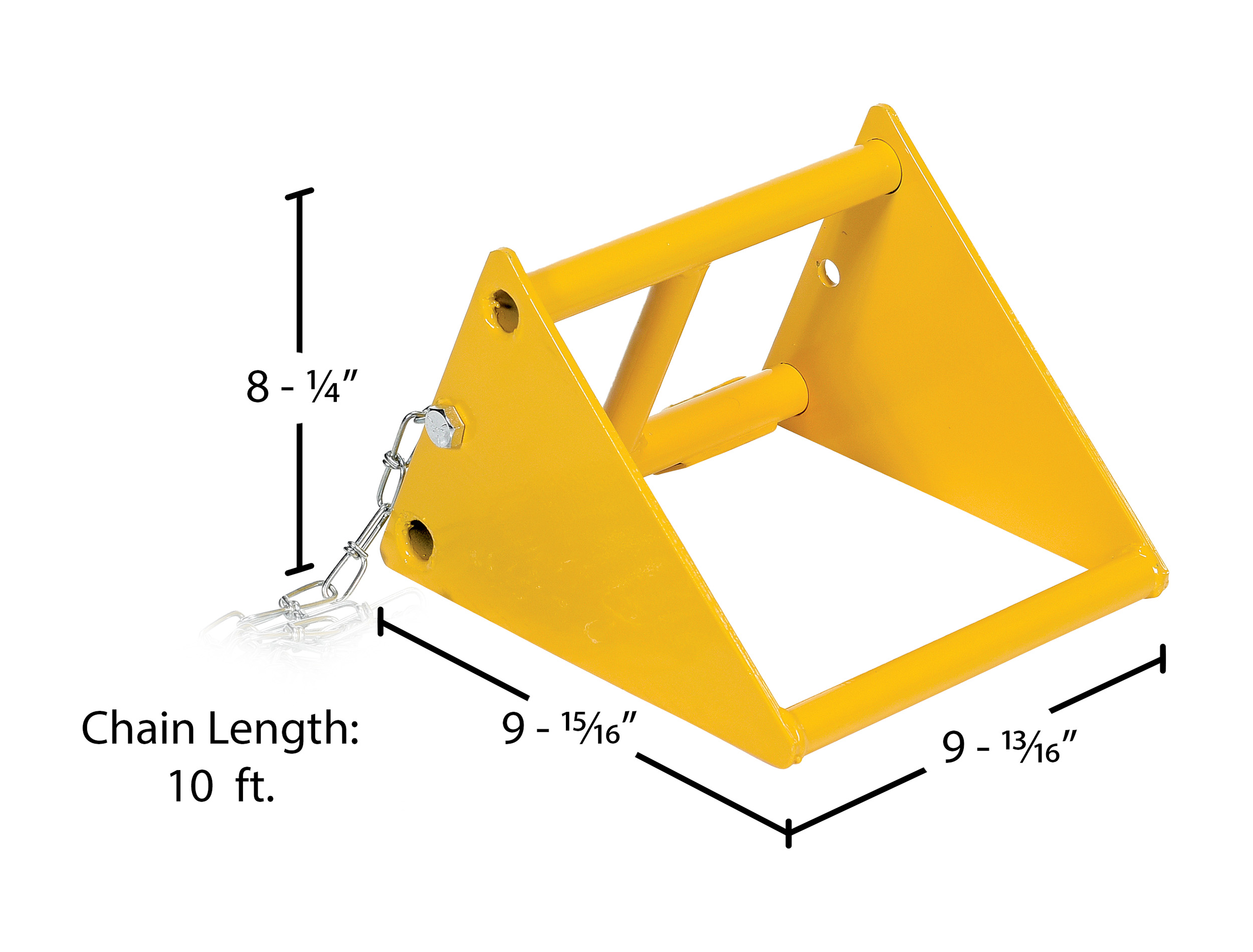 Fabricated Steel Wheel Chock With 10 Ft. Security Chain YellowThe formed steel wheel chock is perfect for on the go or at the shop. The unique design provides control for the user to securely stabilize the object at hand. The minimal weight of the chock lends itself to simple transference and maneuverability. The compact nature of the unit is great for storage when not in use.