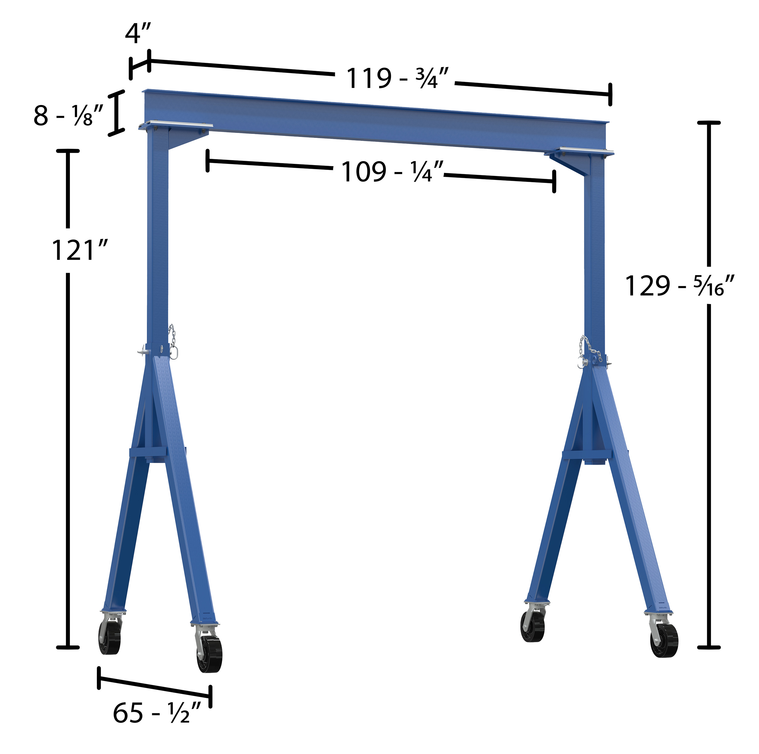 Steel Fixed Gantry Crane with Phenolic Casters 10 Ft. 4000 Lb. Capacity Blue