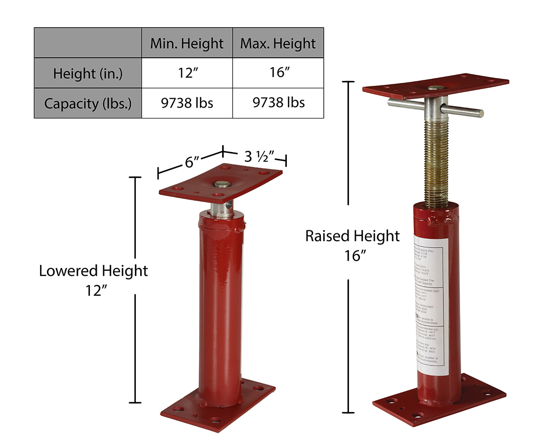 | Height Minimum/Maximum (in.): 12 to 16 | Minimum Height Capacity (lb.): 9738 | Maximum Height Capacity (lb.): 9738 |