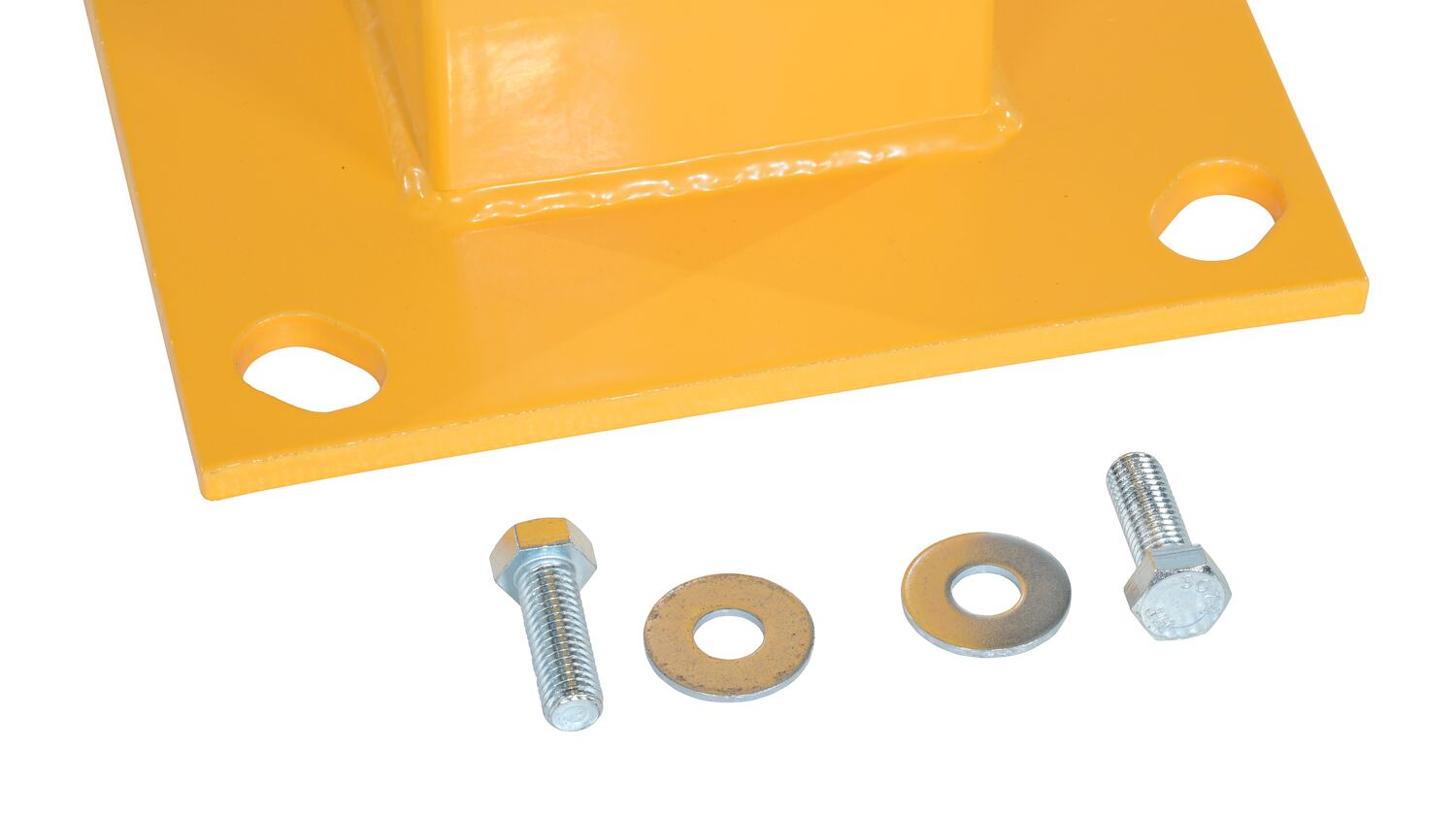 The Tubular post is an addition to the guard rail system. The post is designed with a steel construction for the utmost support strength. The yellow finish allows the post to be both visible and weather resistant. Includes mounting holes on three sides for use as a corner or center post. Posts come with rail mounting hardware. Floor mounting hardware is sold separately.