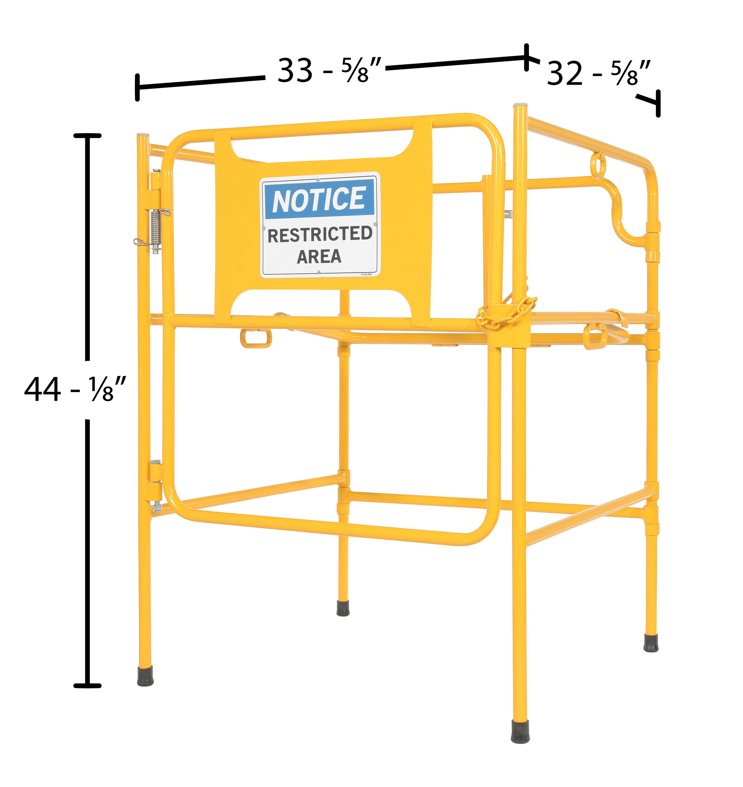 Steel Manhole Guard Rail with Aluminum Sign 31 In. x 30 In. Notice Restricted Area Sign Message Yellow