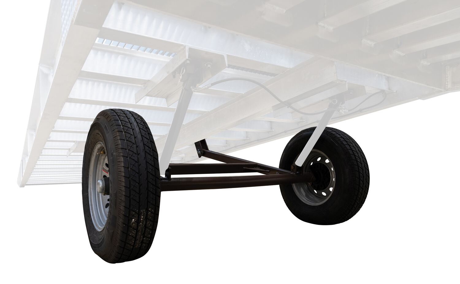 Optional Pneumatic tire option for a steel Yard Ramp.