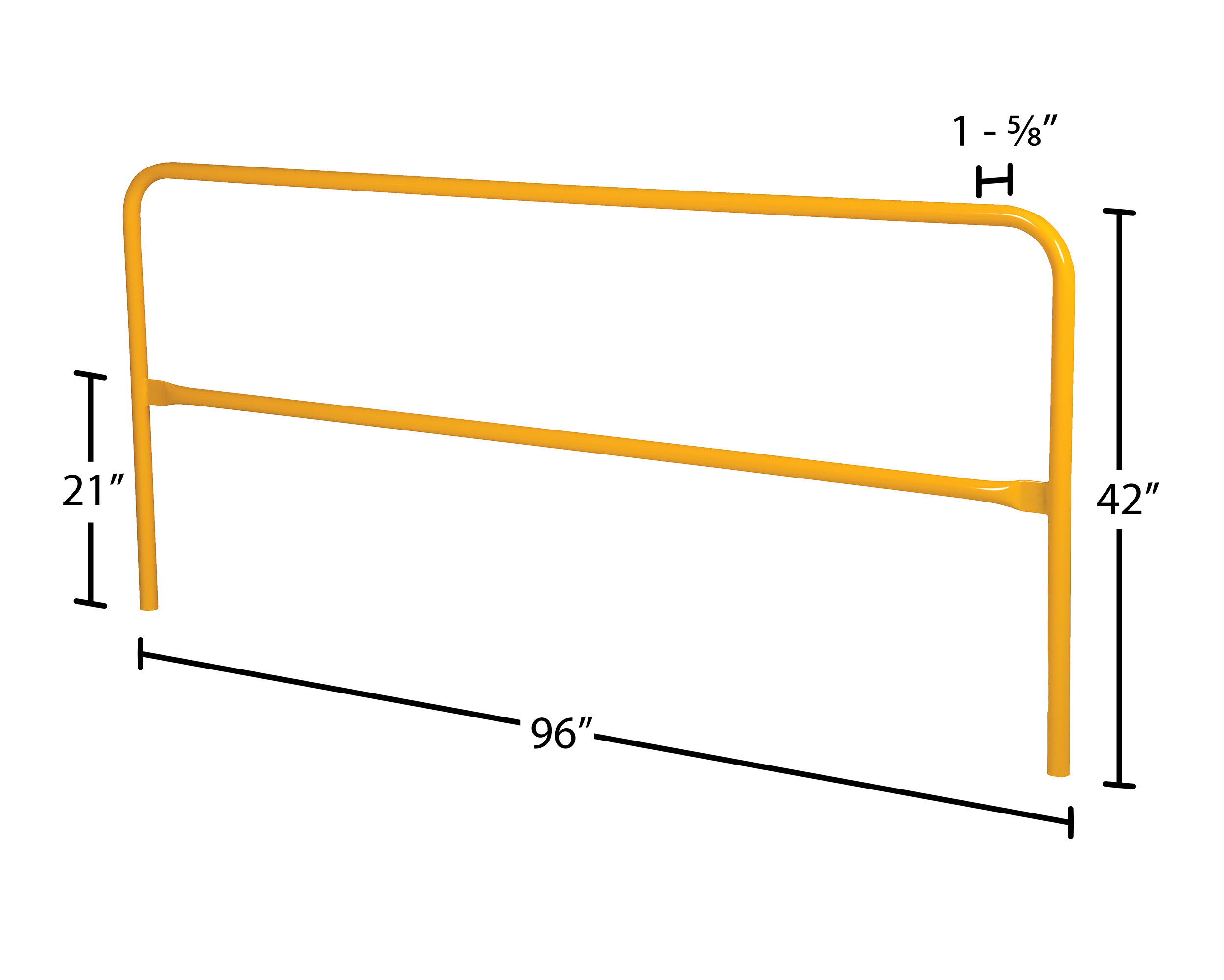 Steel Safety Railing 8 Ft. Length YellowThe pipe safety railing is a great addition to pathways and dock areas. The yellow colored finish allows for visibility of the handrail to create a more secure environment. With a variety of mounting options the unit can be permanently installed or removed after every use. When in place, the handrail creates an ergonomic position while gaining personal stability. VDKR series safety rail complies with U.S. occupational safety and health administration (OSHA) general industry requirements for guardrail systems in 29 CFR 1910.29.