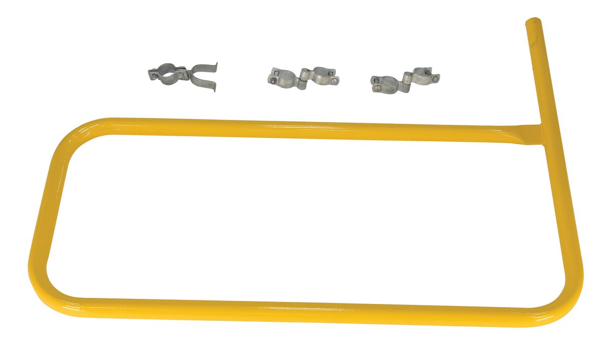 Steel Pipe Safety Railing Gate P-Shaped 36 In. x 36 In. YellowThe steel gate works great as an addition to the pipe safety railing. The steel construction is durable and visible with a yellow finish. Hardware for simple installation is included.