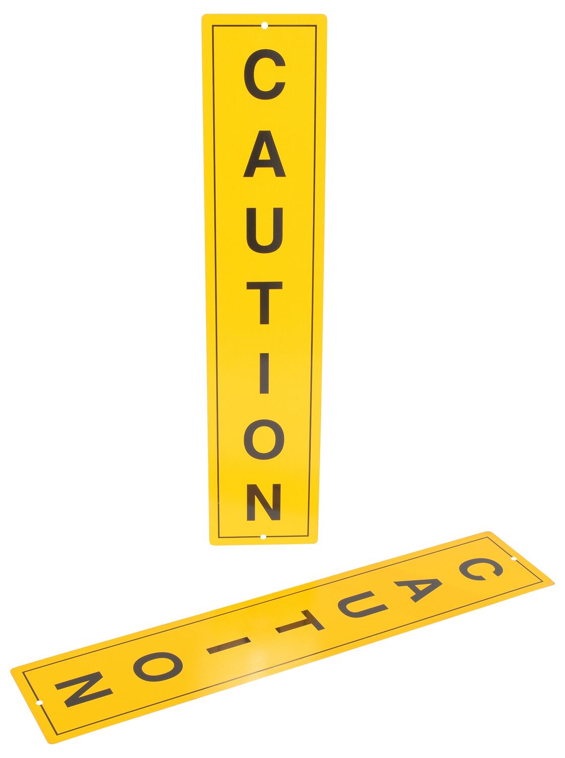 Highly visible reflective caution signs are constructed from aluminum. Sticks directly to your loading dock to help guide drives as they back into the loading dock. Variety of OSHA signage available in Facility Maintenance section.