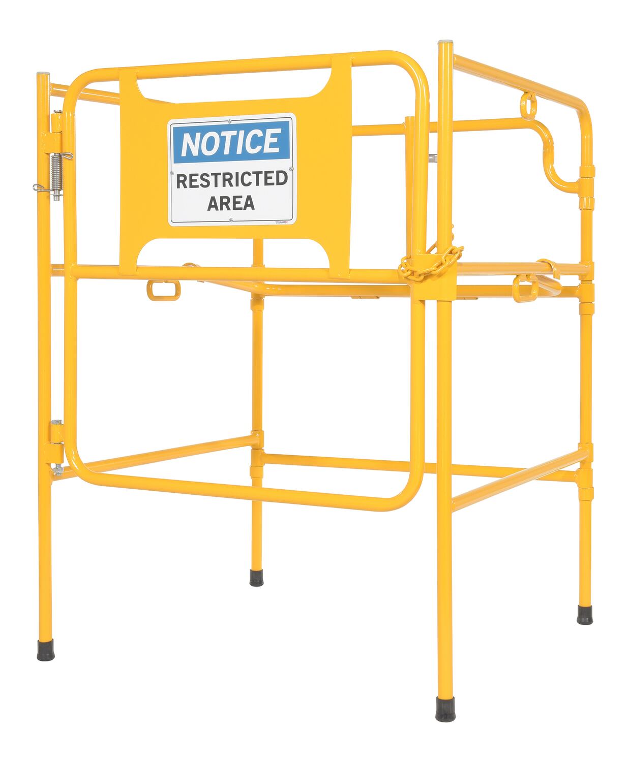 MHGR-32-SI-N-02 MHGR-32-SI-N-02Steel Manhole Guard Rail with Aluminum Sign 31 In. x 30 In. Notice Restricted Area Sign Message YellowUsable Width/Length (in.): 31 x 30