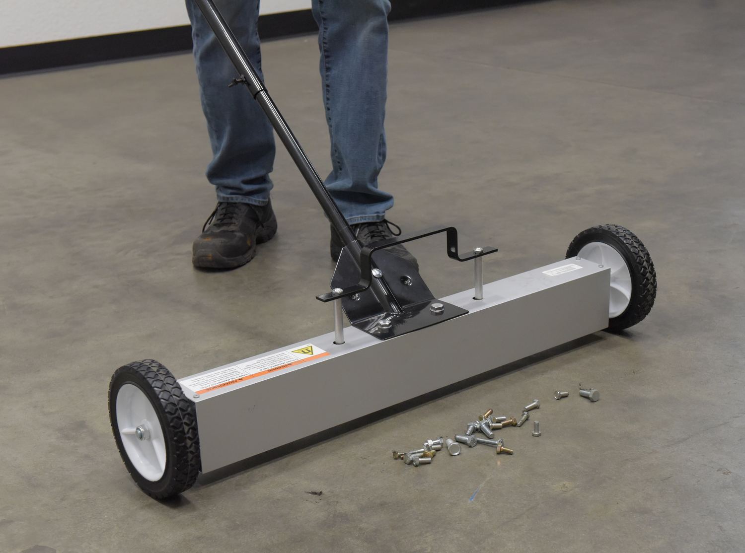 Magnetic Sweepers are ideal for manufacturing facilities and construction sites. The sweeper is ergonomically friendly with an efficient handle controlled release. The design and capacity can accommodate large and small materials. While the standard handle allows for comfortable upright position during use, the wheels allow smooth rolling for quick and easy collection of objects.