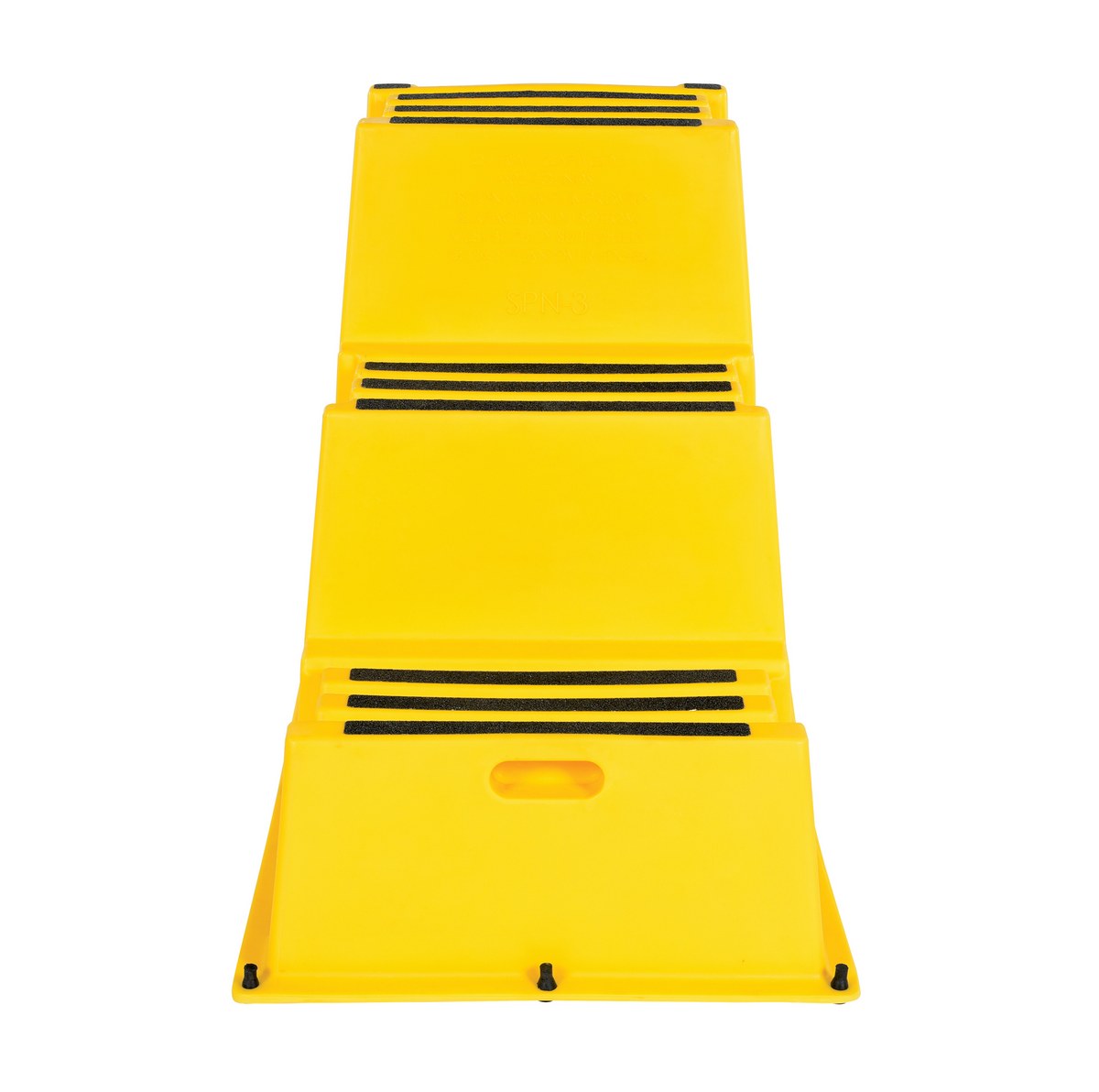 A poly step stool is a great asset for on the go or in a permanent setting. A lightweight design with front and side cutout handles, allow the user to easily transfer the stool to a preferred spot. The taped step surfaces ensure safe footing while traversing up and down the steps. Includes bolt on handrail and casters. The hand rails height allows the unit to be pushed or pulled into the desired position, minimizing bending and twisting by the user. Steps can be nested to minimize footprint when not in use.