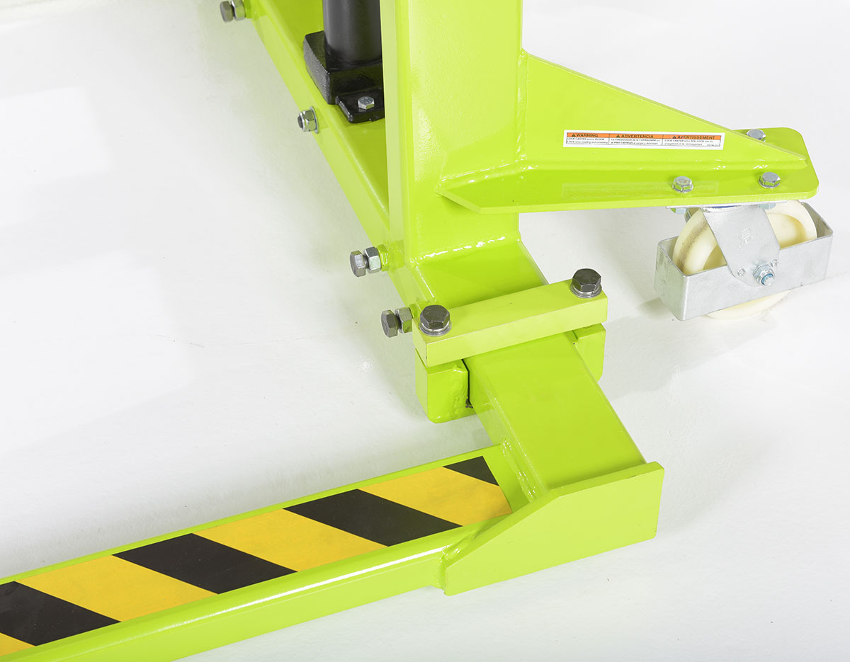 The Variable Height Stacker is great for a variety of warehousing departments. The unit is constructed of steel for strong support and durability during day to day use. The color is bright for high visibility from across crowded workplaces. The manual hand pump functionality is perfect for rising to precise positions. To use, simply slide forks of the unit through the pallet openings and lift to desired height.