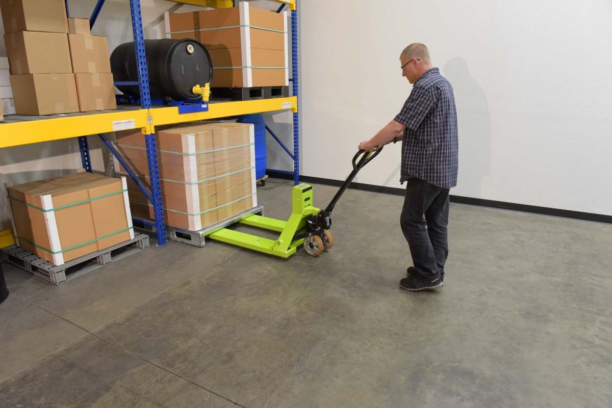 The Pallet Truck with digital scale is ideal for shipping and dock personnel. The pallet truck is designed of steel for resistance against damage throughout day to day use. A bright finish allows the units to be visible to other personnel, both near and far. The extended steering handle creates a more ergonomically friendly position while distributing products from work area to work area. Easily maneuverable in tight spaces. Scale is raised closer to user for a visibility.