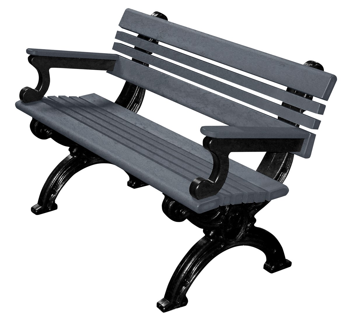 | Recycled Plastic Bench Cambridge with Arms 48 In. Black Frame and Charcoal Seat | Seat Category: Bench Bench Material: Recycled Plastic HDPE | 49 |