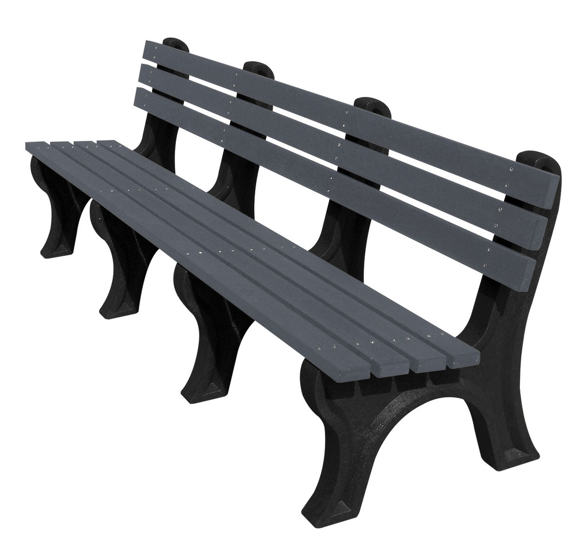 | Recycled Plastic Economy Backed Bench 72 In. Black Legs and Charcoal Seat | Seat Category: Bench Bench Material: Recycled Plastic HDPE | 116 |
