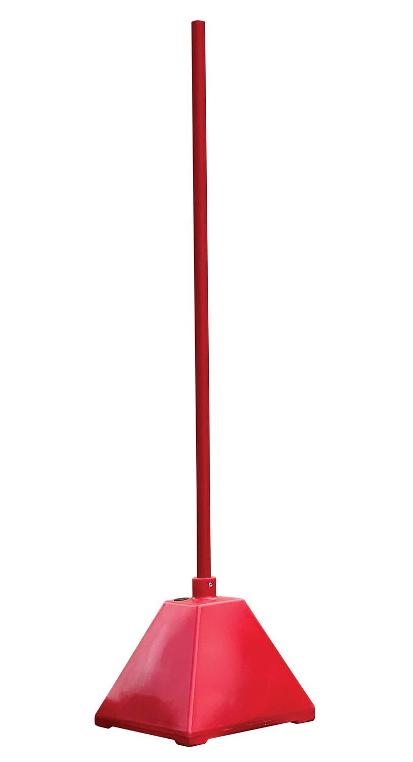 PYSB-R PYSB-RLow Density Polyethylene Plastic Pyramid Sign Base with Steel Pole 22 In. x 22 In. x 98 In. RedMaximum Fill Weight (lb.): 100