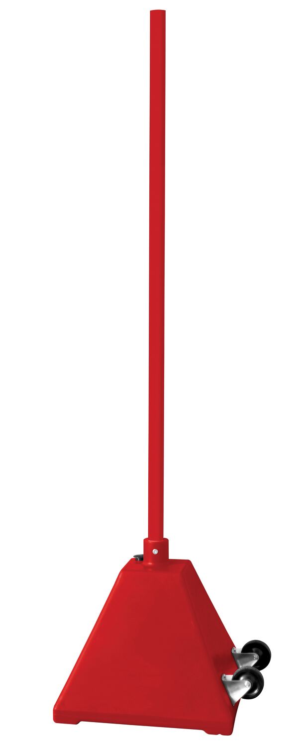 PYSB-W-R PYSB-W-RLow Density Polyethylene Plastic Pyramid Sign Base with Steel Pole and Wheels 22 In. x 22 In. x 98 In. RedMaximum Fill Weight (lb.): 100