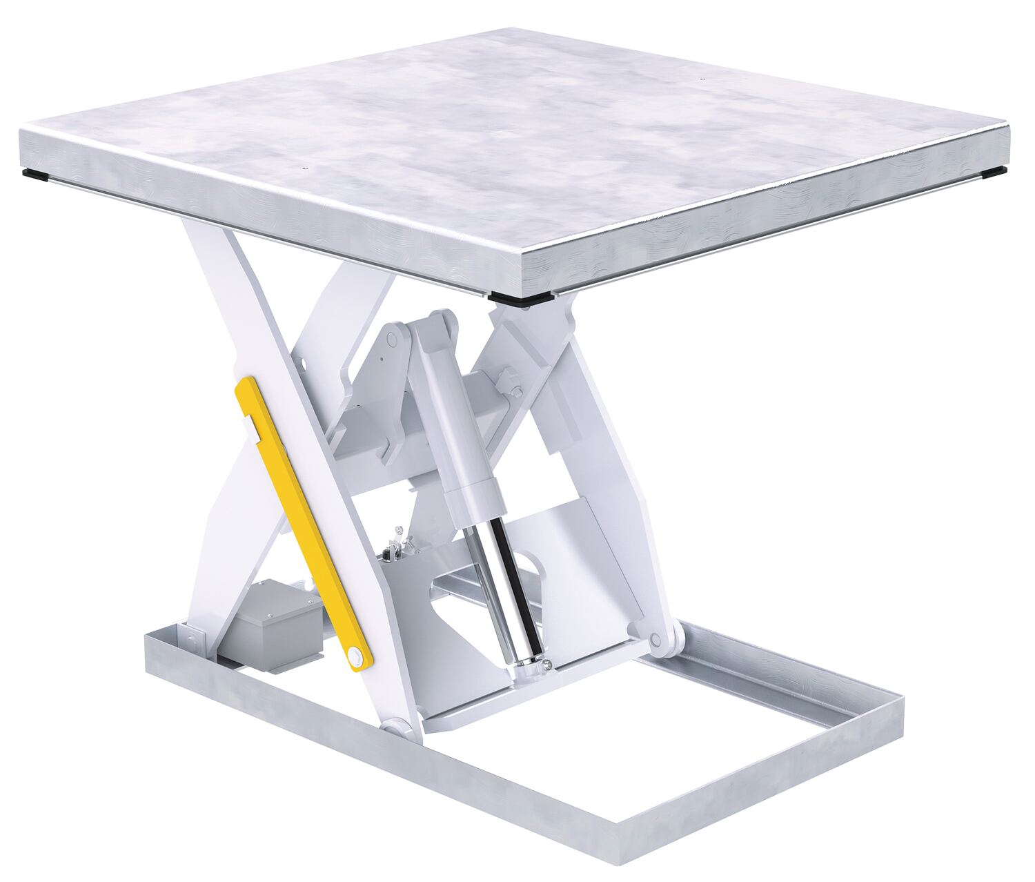 | Partially Stainless Steel Electric Hydraulic Lift Table 48 In. x 48 In. 1000 Lb. Capacity White/Silver | Uniform Capacity (lb.): 1,000 Travel Time (sec.): 7 | 820 |
