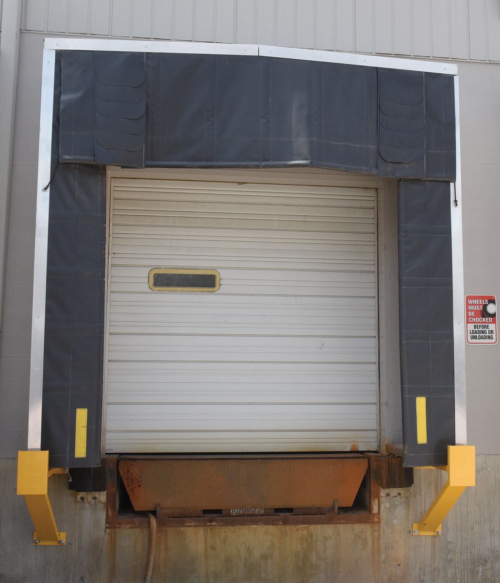 Dock Shelters are designed to protect goods, personnel, and equipment at loading docks by providing a barrier against weather elements and enhancing energy efficiency. The Dock Shelter is used with doors up to 10'W x 10'H. The dock shelter reduces oversized doors to match truck openings. The long wear fabric is highly resistant to abrasion and tearing. Fiberglass staves are sewn into the flaps. Seal is formed along the sides and top of trailer when the vertical and top panels are pushed inward by the trailer. Recommend minimum 10" trailer penetration for a good seal. Supporting structure is made of 2" x 4" wolmanized lumber. The top header piece measures 132"W and contains a drop curtain which measures 36"H. Two vertical pieces measure 126" tall with vertical flaps measuring 21"W. When installed, the shelter will close the door opening down to 90"W x 90"H (between flaps). Includes two yellow steel guide protectors and foam-filled corner draft protector pads for extra sealing action. Units are non-returnable.