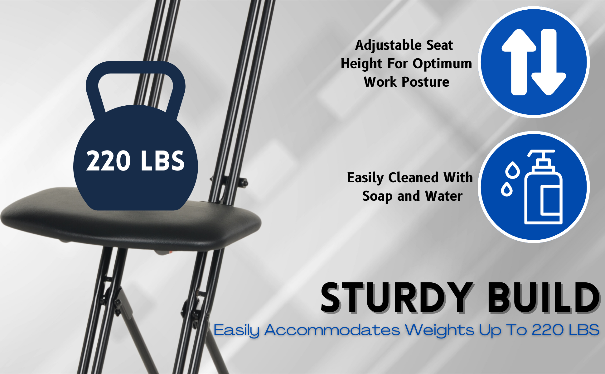CPRO-100 CPRO-100Steel Height Ergonomic Worker Chairs 9 In. to 18 In. 220 Lb. Capacity BlackUniform Capacity (lb.): 200