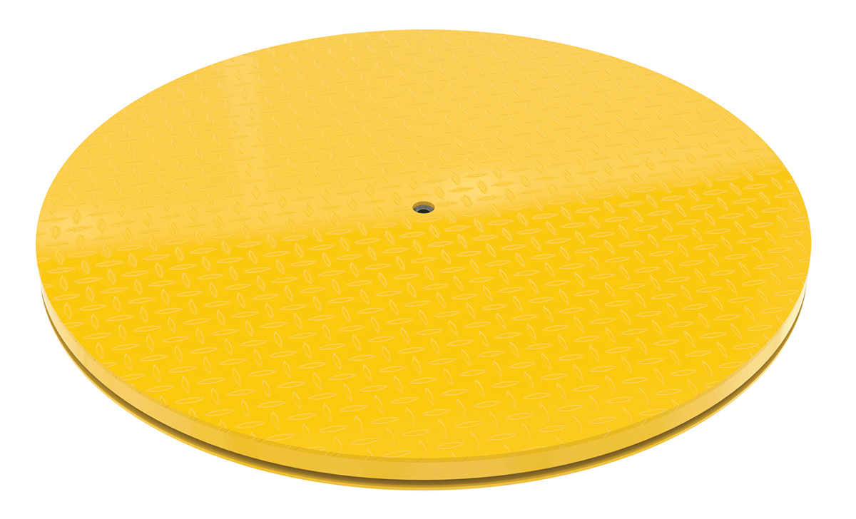 The Heavy Duty King Pin Carousel has all the ergonomic benefits of the standard carousel with a top plate and stabilizing center pin. Unit will handle a wider variety of loads. Features include 1/4" tread plate top on 4,000 lbs. and 3/8" tread plate top on 6,000 lbs. models. Also includes a heavy-duty maintenance free bearing. The king pin design allows off set loading up to 50% of the capacity on at least 50% of the deck.