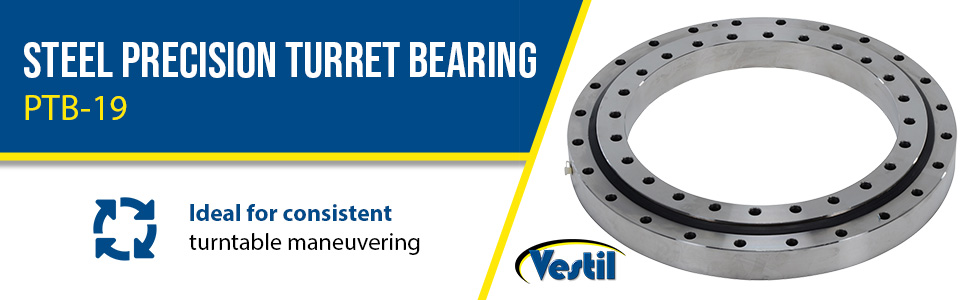 The Precision Turret Bearing is ideal for consistent turntable maneuvering. The bearing is able to meet the most precise degree, when they matter most. The unit can be used as a stand-alone carousel in a variety of manufacturing settings. With a lightweight construction the bearing is easily transported and turned softly during procedure.