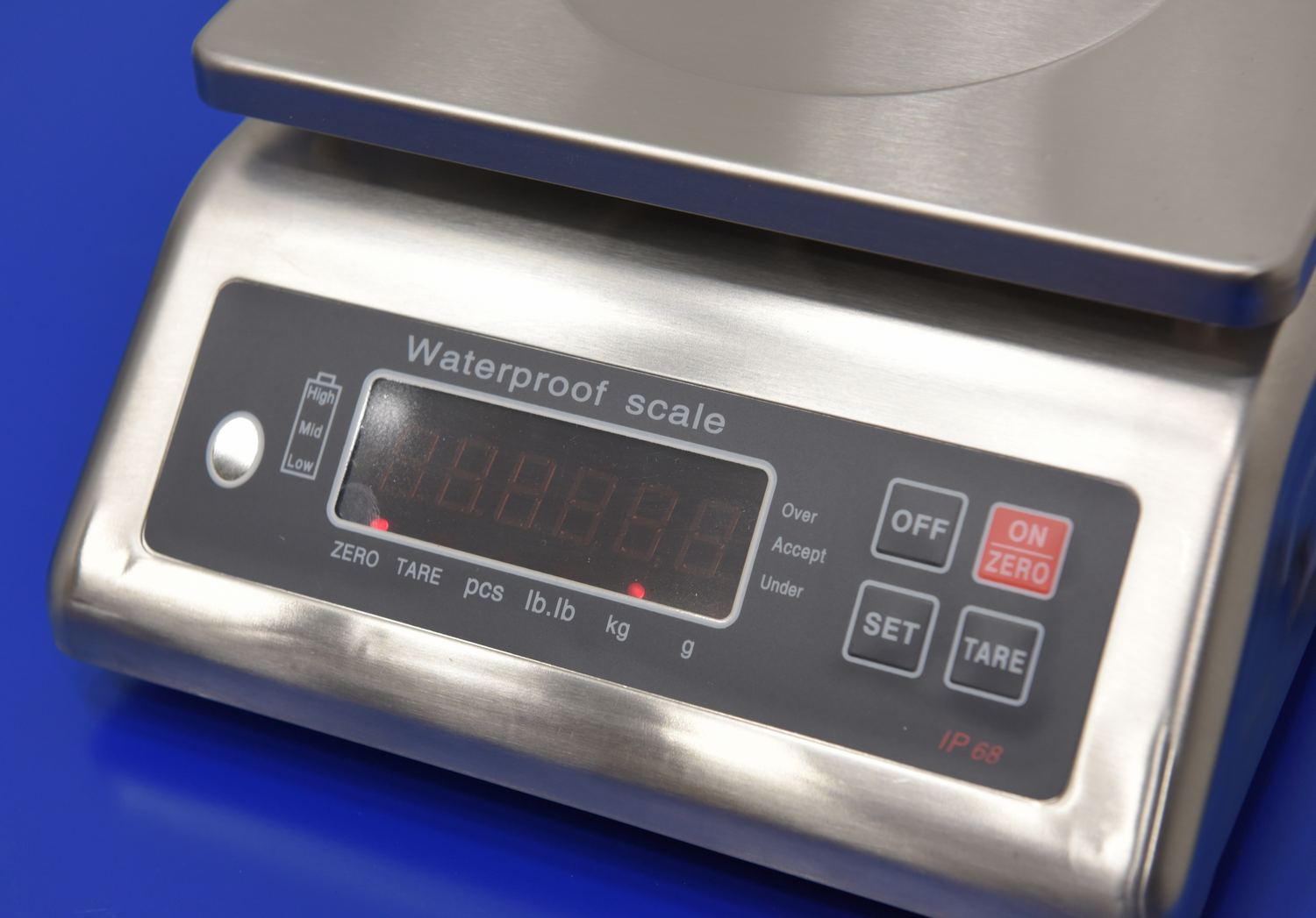 • Switches between pounds and kilograms