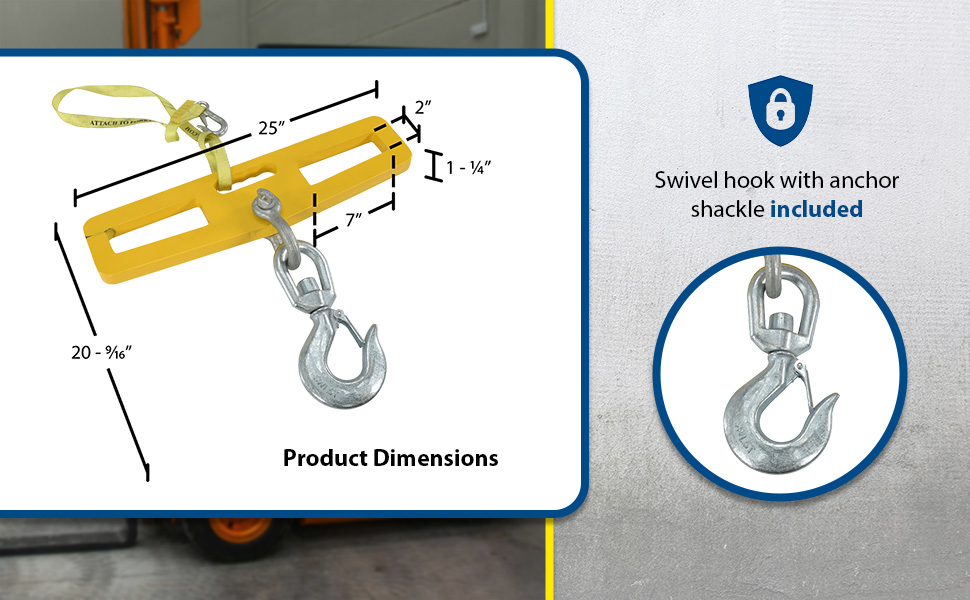 LM-HP10-SL LM-HP10-SLSteel Fork Truck Hook Plate Swivel with Latch 10,000 Lb. Capacity YellowUniform Capacity (lb.): 10,000