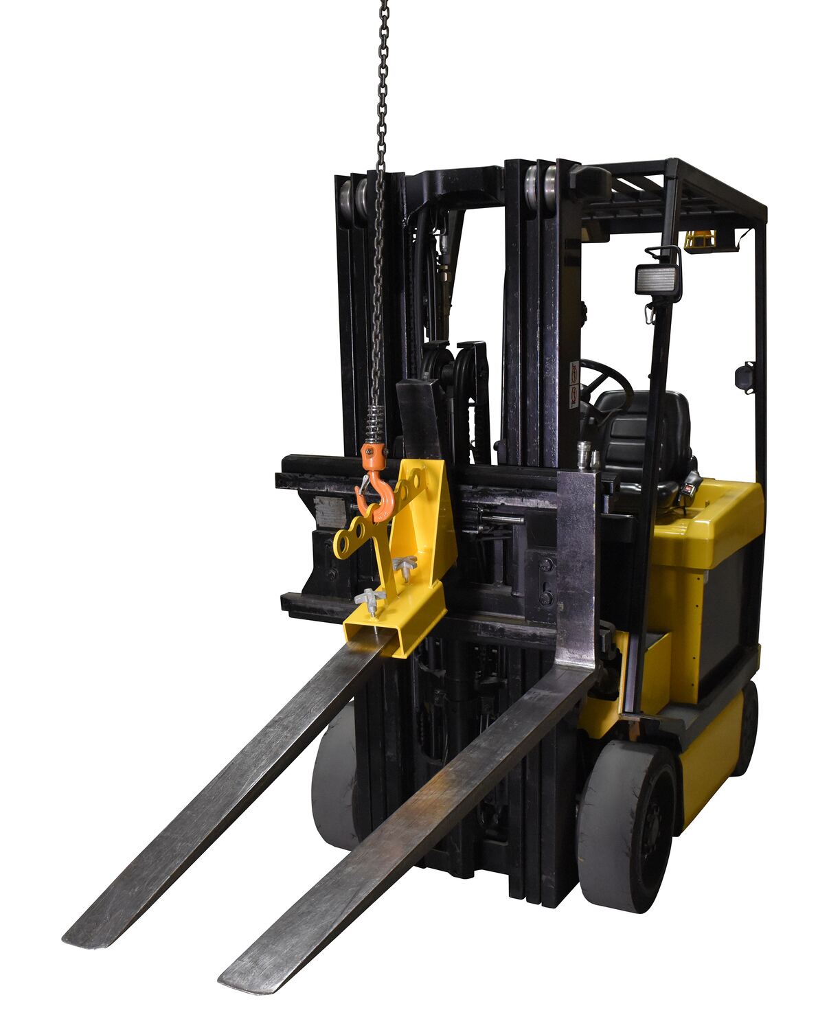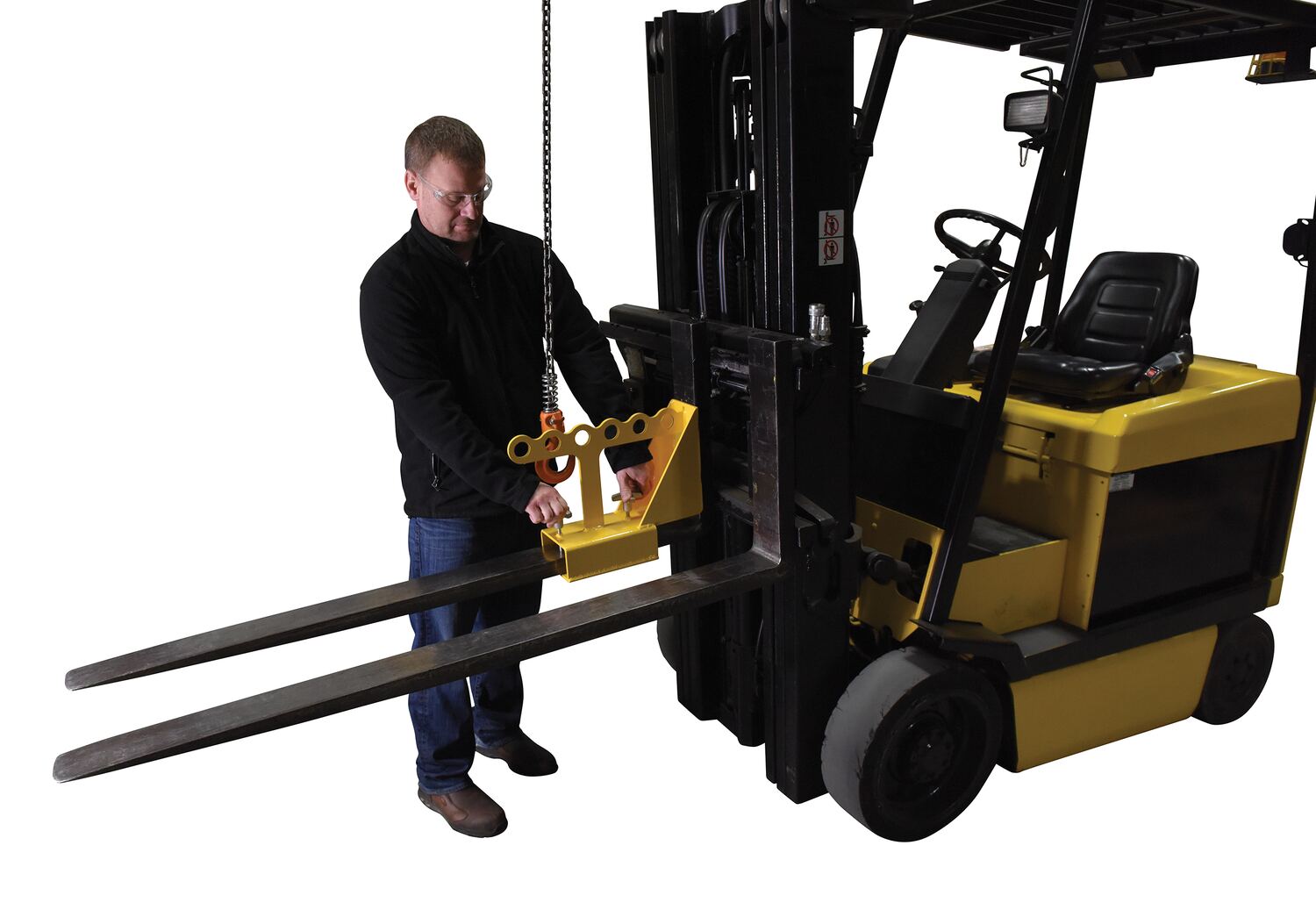 Manually lifting and carrying individual forklift forks used to be demanding, dangerous, and labor intensive. Now, thanks to Vestil's continuous ingenuity, work in the manufacturing, farm, and freight industries just got easier! This fork lifter is specifically designed to assist in removing forks from the forklift carriage. To use, simply slide the lifter over the body of the fork until it reaches the desired position and then tighten the two security knobs to prevent the lifter from moving further down the fork. The lifter is now ready to be attached to your lifting equipment by utilizing one of the six hook points!