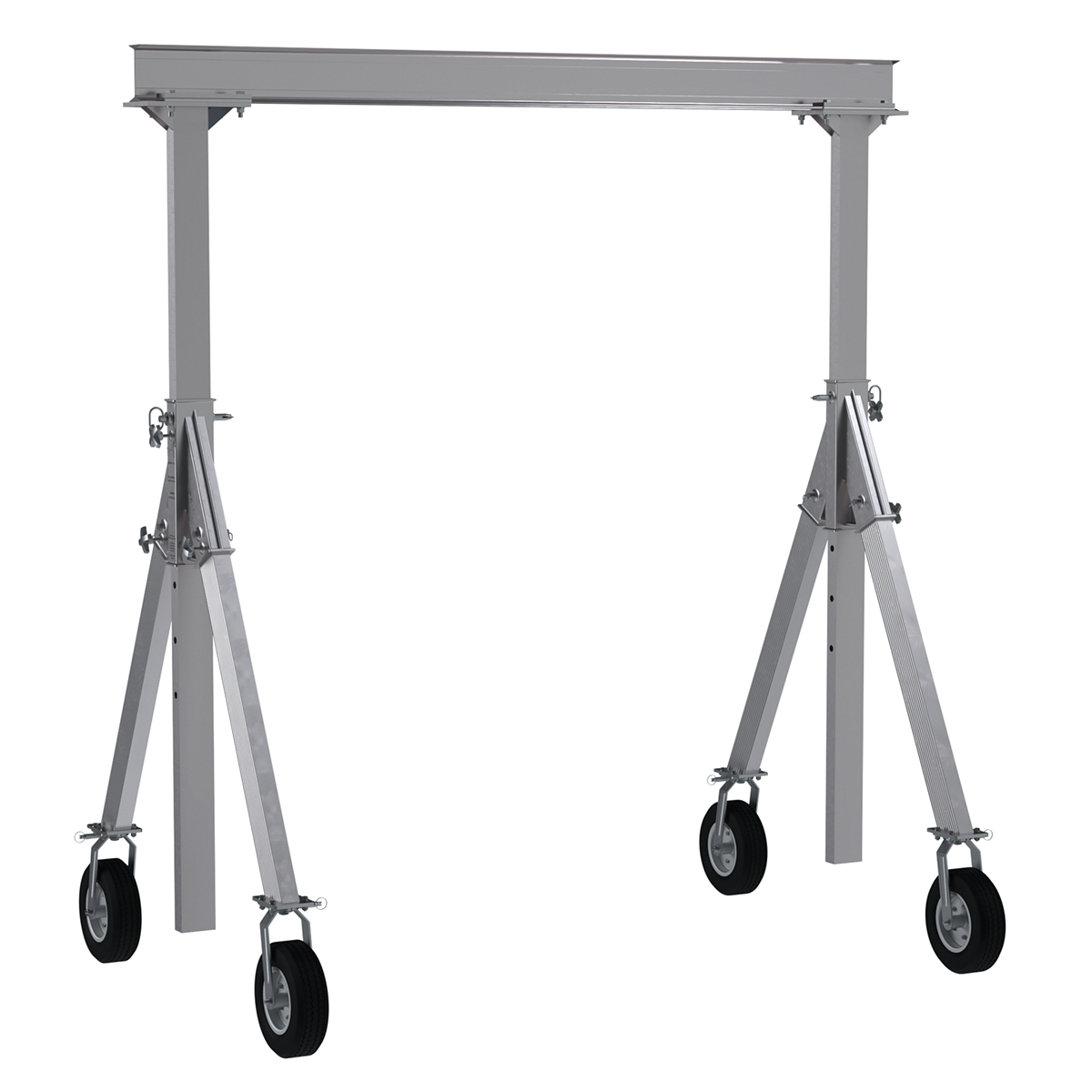 | Aluminum Adjustable Height Gantry Crane with Pneumatic Rubber Casters 8 Ft. Wide x 10 Ft. Max Usable Height 4,000 Lb. Capacity Silver | Uniform Capacity (lbs): 4000 Overall I-Beam Length (ft.): 8 | 301 |