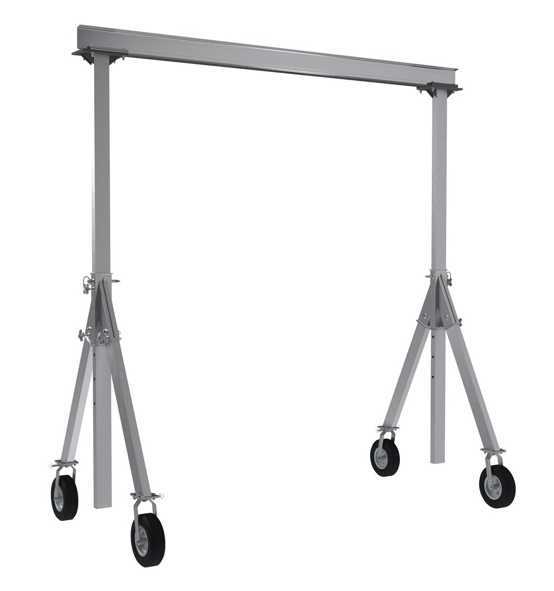| Aluminum Adjustable Height Gantry Crane with Pneumatic Rubber Casters 8 Ft. Wide x 12 Ft. Max Usable Height 4,000 Lb. Capacity Silver | Uniform Capacity (lbs): 4000 Overall I-Beam Length (ft.): 8 | 301 |