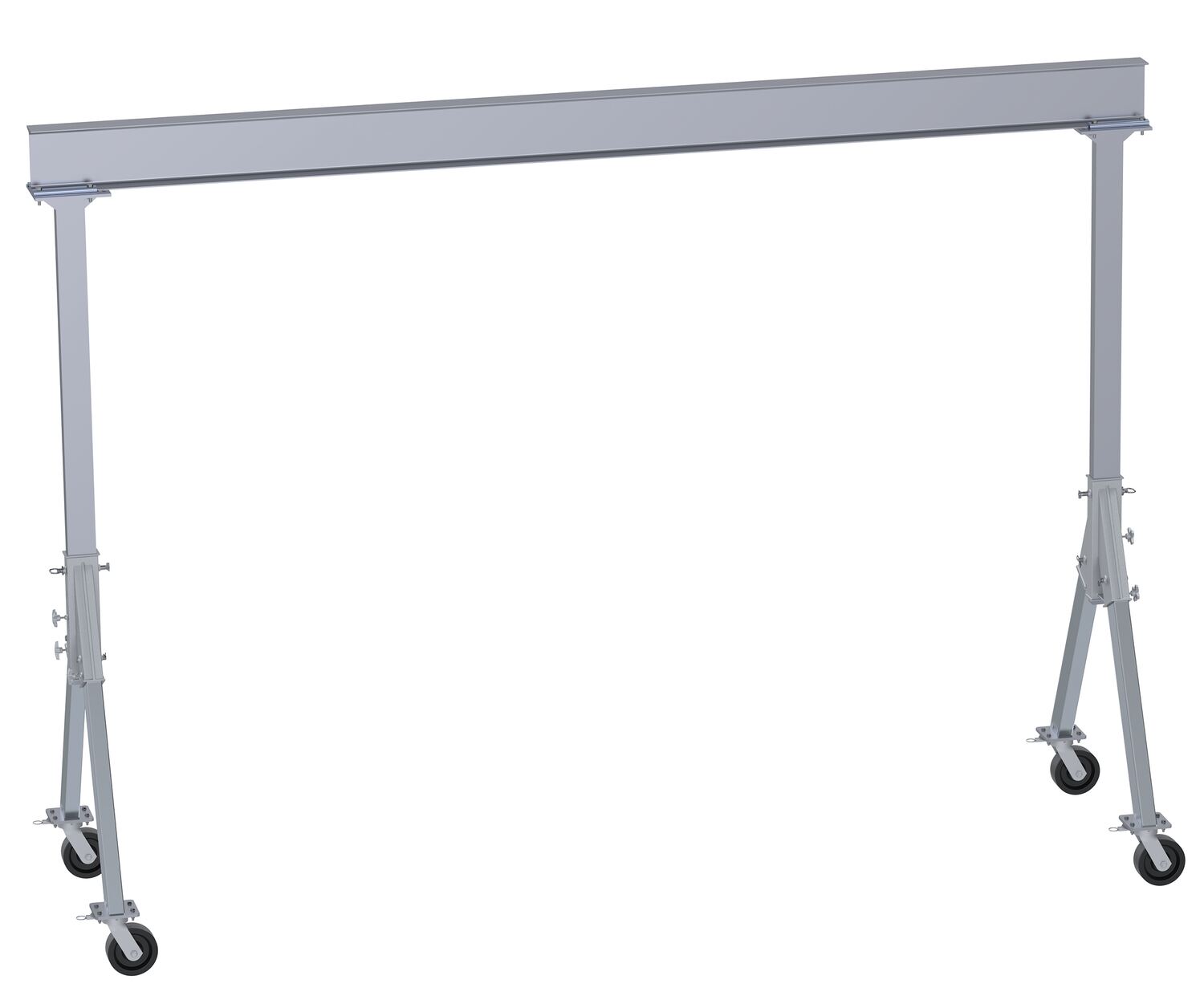 The Fixed Height Aluminum Gantry Cranes are ideal for variety of industries including maintenance and production. The aluminum design is easily manageable and can be simply assembled for immediate use. A fixed height is perfect for working in a permanent or semi-permanent environment where the surrounding seldom change. Casters provide a smooth way to transfer units when unloaded and if changing locations is needed. Unit comes standard four (4) position locking swivel casters with roller bearings (2K units have glass filled nylon casters. 4K-6K units have phenolic casters). A strong construction allows for long lasting strength through the harshest of environments. Hoists & Trollies can be ordered seperately.