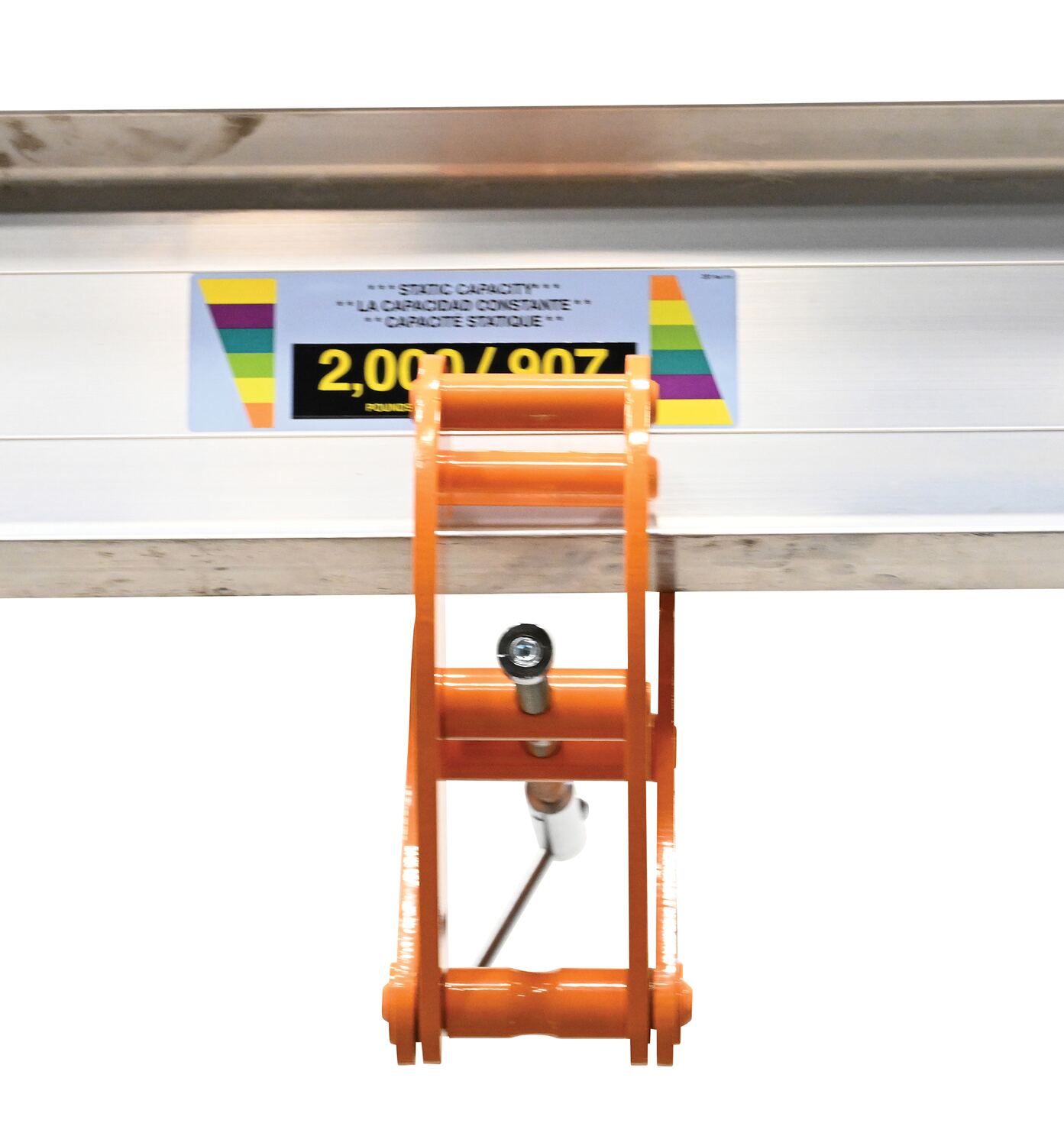 BC-8Designed to reduce the I-beam flange stress by distributing loads away from the flange edges during overhead lifting applications. These versatile units can be interchanged from one gantry to another in a matter of seconds with its easy mechanical adjustment mechanism. A bar is located at the bottom of the beam clamp for attaching a hoist (sold separately). Steel construction and painted finish.