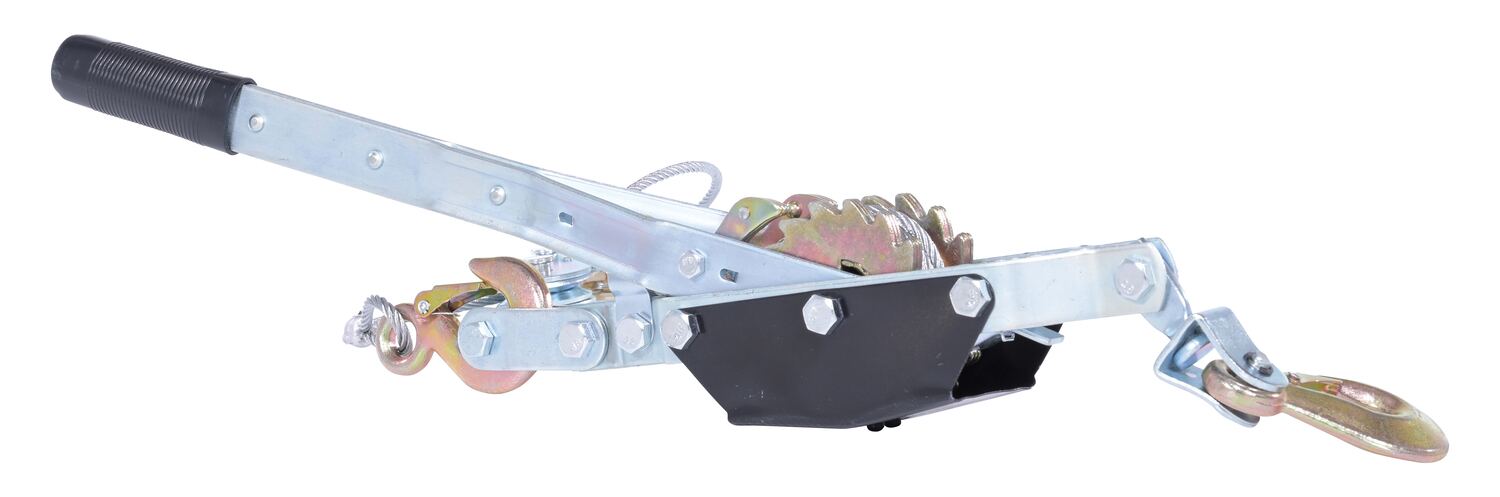 A Galvanized two-speed cable puller is great for use in horizontal pulling applications such as positioning equipment, stringing lines and emergencies. Can be used in both single and double-line pulling applications. Handle ratchets to take-up cable. When handle is rotated all the way back, the cable reel will free-wheel. Handle length is 16". Minimum headroom is 24". Single-line cable length is 3/16" x 120" (Cable length is 60" when used double-line). Not for use in vertical lifting applications.