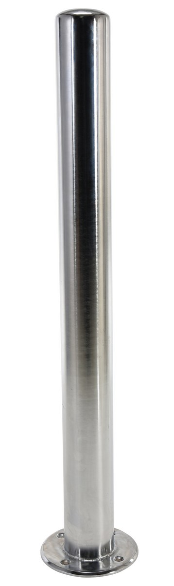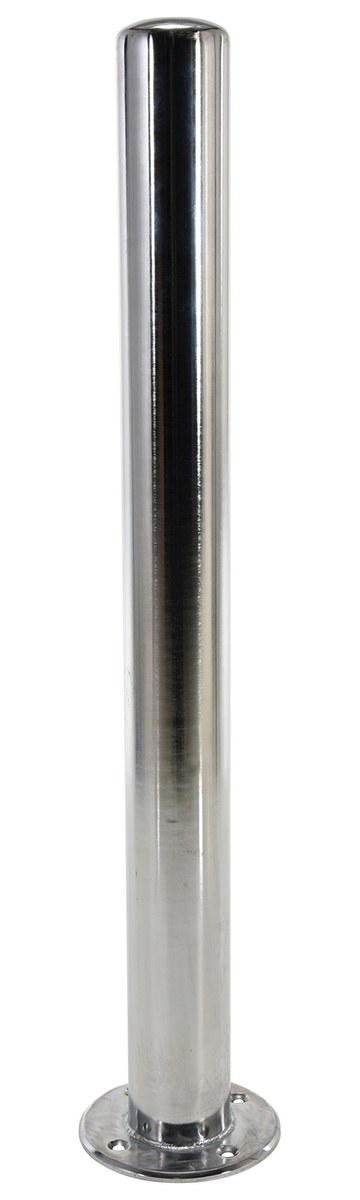 Improve the image of your facility while protecting people and equipment with this heavy-duty Chrome Bollard. Unit is made of steel and finished with an attractive bright chrome plating for a clean fresh look. Mounting hole diameter. is 1/2" x 4 holes Mounting plate outer diameter is 8" Mounting plate thickness is 3/8". Recommended for indoor use.