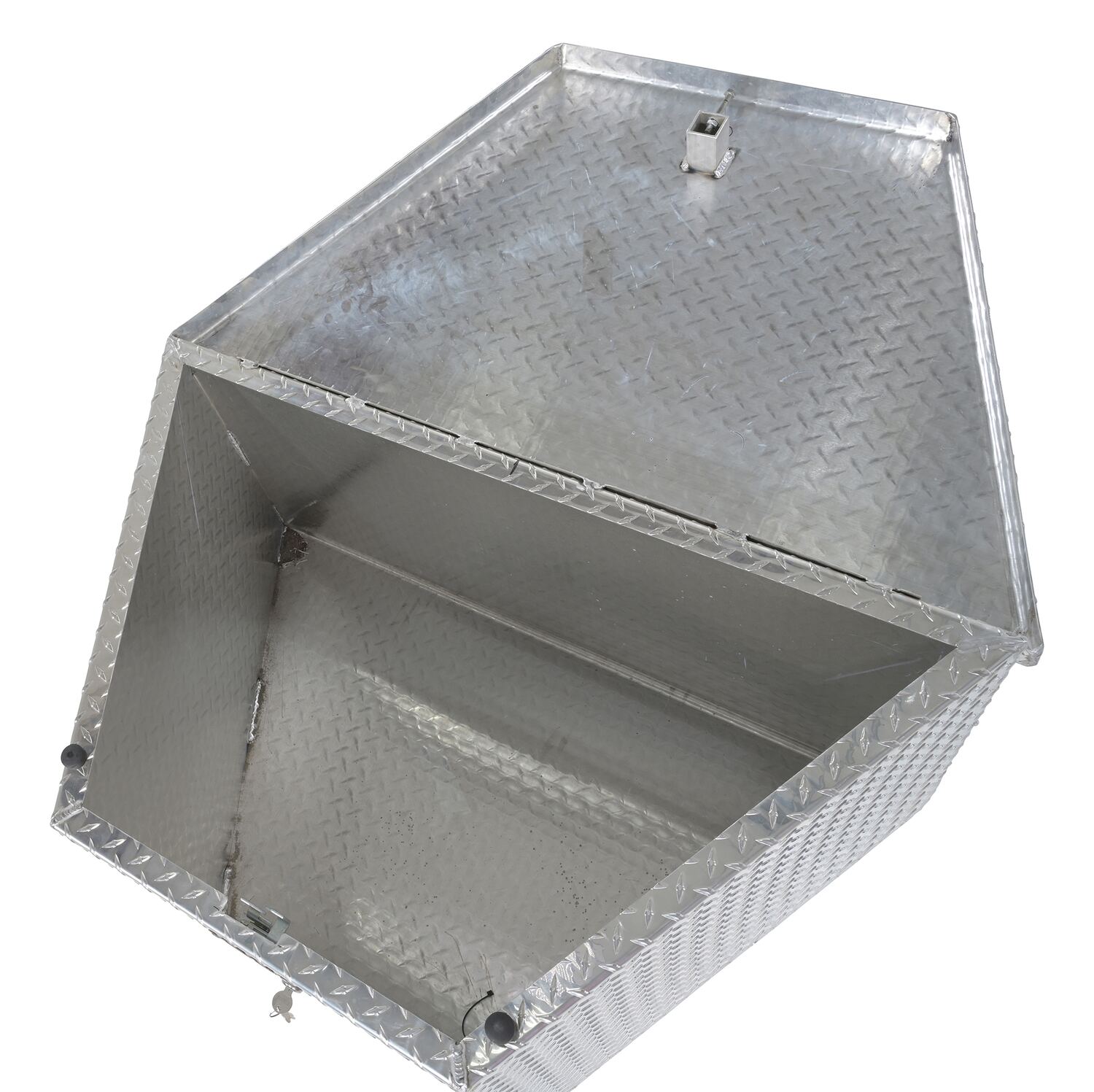 This toolbox is specifically designed to be used on the tongue of fifth wheel trailers. So often this space is never utilized fully or all together wasted. With this specifically in mind, this toolbox is built to fit directly into that empty fifth wheel space. A narrow front end with a wide back allows the user to secure a large variety of items and protect them from the outside elements.