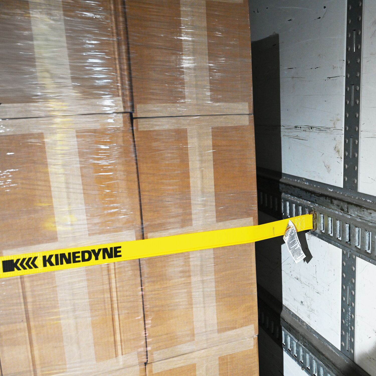 Guard against damages from slipping and shifting loads while transporting products. Spring loaded e-track fittings provide quick one-handed connection to anchor point. Both ratchet and cam buckle models tighten and release quickly. Tough strapping fabric is made of a polyester webbing.
