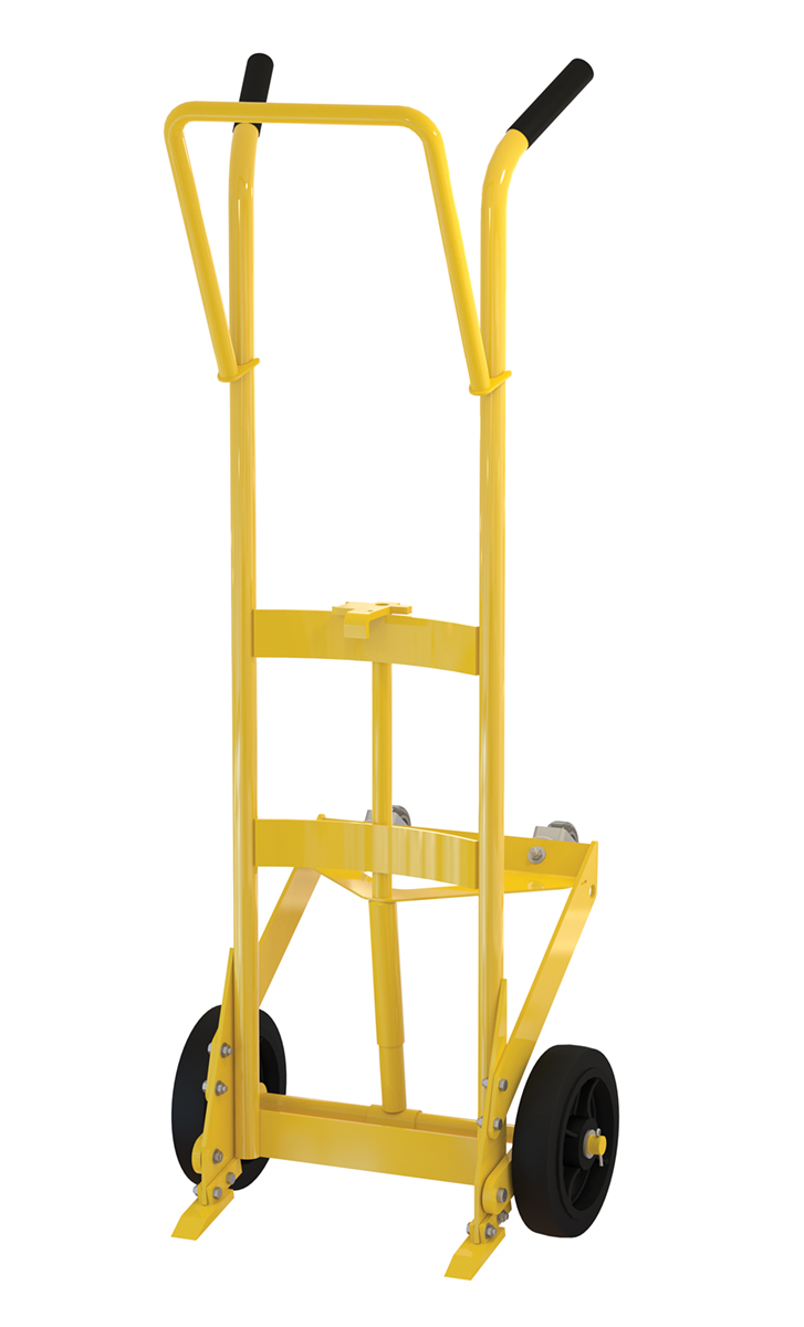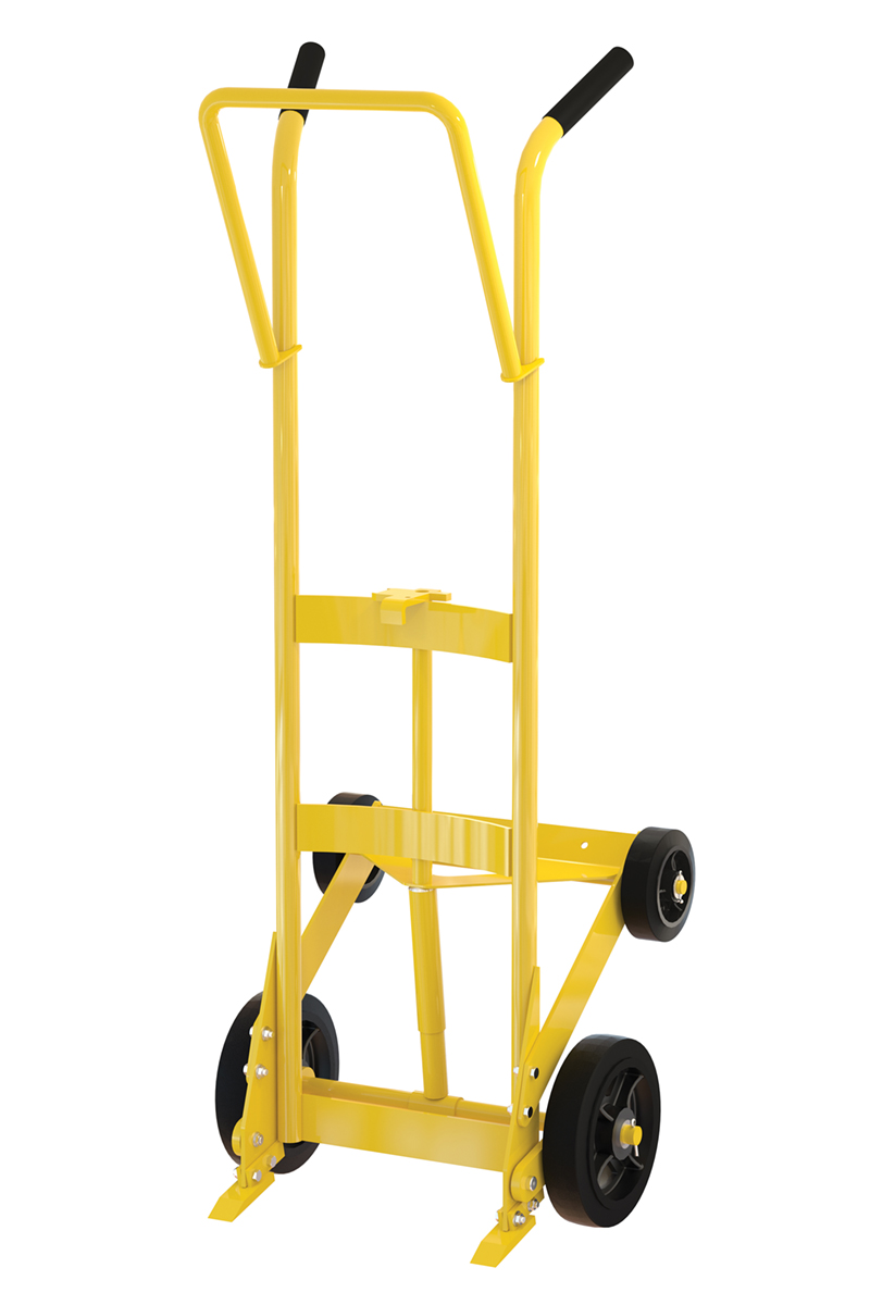 Designed for moving 55 gallon steel or plastic drums. Features a spring mechanism, which allows for easier tilting of fully-loaded drums. Four-wheel design for easier drum transportation when tilted. Top loop handle allows for easier control when moving. Drum is secured to truck with an adjustable height drum hook bar. Removable drum hook bar includes built-in bung nut wrenches. Capacity is 1,000 pounds. Steel construction with powder coat finish.
