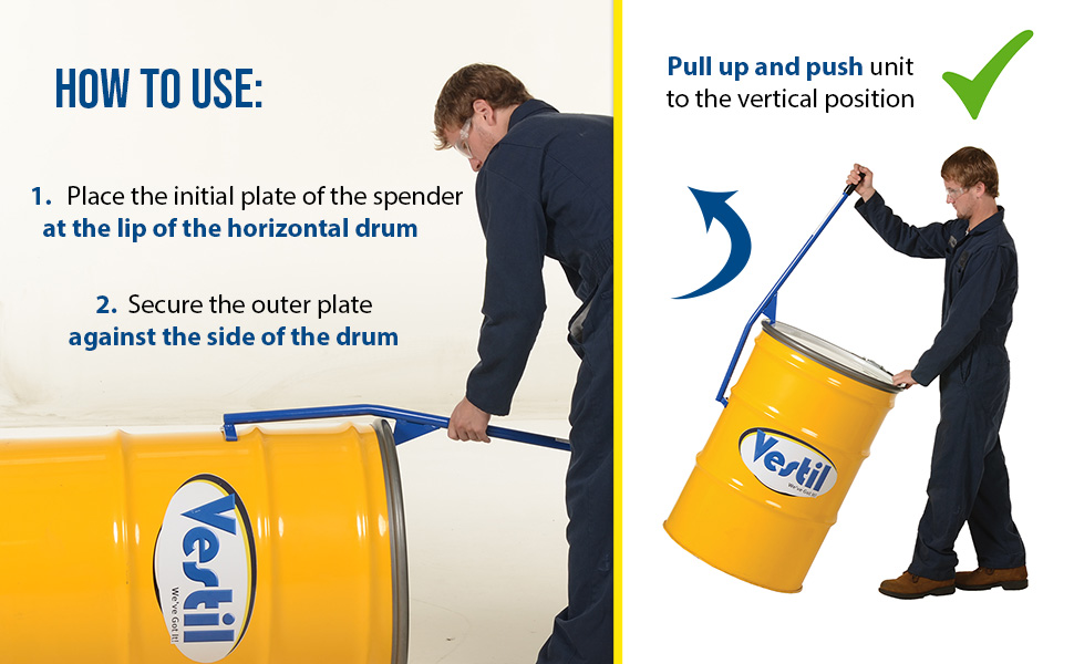 Sometimes you will find that drums are not in their proper position and lifting or lowering those drums manually can be a dangerous job. To ease that burden, look for the manual drum upender! A drum upender provides the leverage needed for tilting horizontal drums to the vertical position. Designed with a narrow top plate this tool easily secures a variety of chimes. Built of durable steel with a baked in powder coat finish.