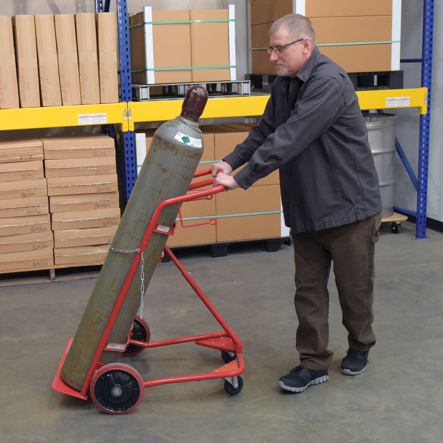 • Cylinder tilt back hand truck is ideal for transporting cylinders from storage to work space