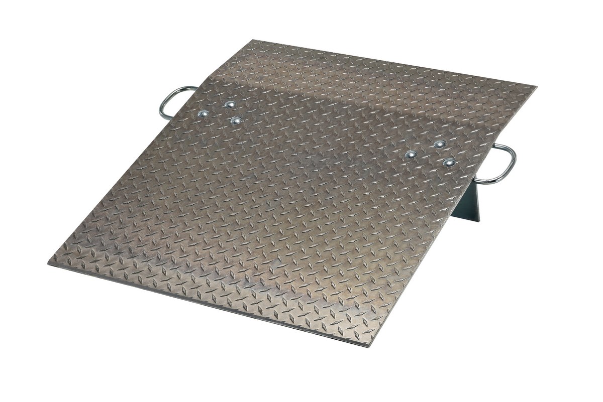 Aluminum Hand Truck Dock Plate 30 In. x 36 In. 500 Lb. Capacity SilverThis Aluminum Hand Truck dock plate is designed for use with two (2) wheel hand trucks. It is a convenient, safe, and easy way to access loading docks from trucks. This dock plate is lightweight and easily transported by just one person. The locking legs secure the plate for safe loading and unloading. Complete with bolt-on zinc plated carrying handles and locking legs.