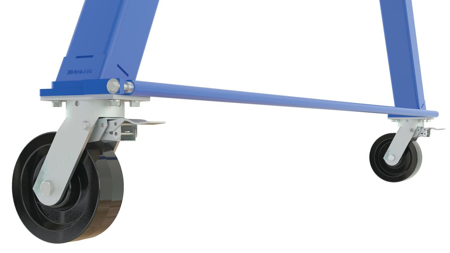 Steel Knock-Down Adjustable Height Gantry Crane with Total Locking Phenolic Casters 15 Ft.Wide x 7 Ft. Max Usable Height 8,000 Lb. Capacity BlueThe adjustable height steel gantry crane is designed for transporting and positioning materials along the beams length. The cranes beam height can be adjusted to better conform to the working conditions making it both ergonomically friendly and cost effective. Unit comes standard with total locking casters. Height is adjustable in 6" increments. Do not move units while loaded. Hoist and trolley can be ordered separately. A painted blue finish protects the unit. Designed for semi-permanent or permanent applications.
