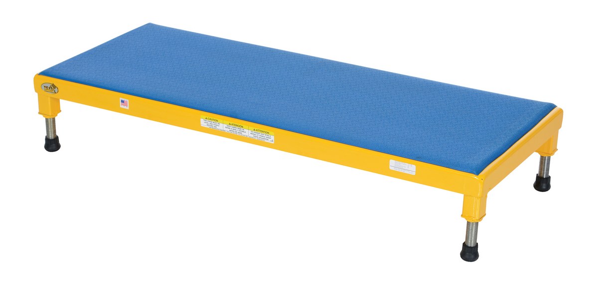 Steel Adjustable Work-Mate Stand 48 In. x 19 In. x 6-3/4 In. 500 Lb. Capacity YellowThe adjustable work-mate stand minimizes fatigue by elevating workers to heights that are comfortable and ergonomically correct. Especially useful when multiple shift employees operate the same piece of machinery. The ergonomic matting deck style provides comfort for the operator who stands all day. The height of each leg can be adjusted individually to ensure proper working height.