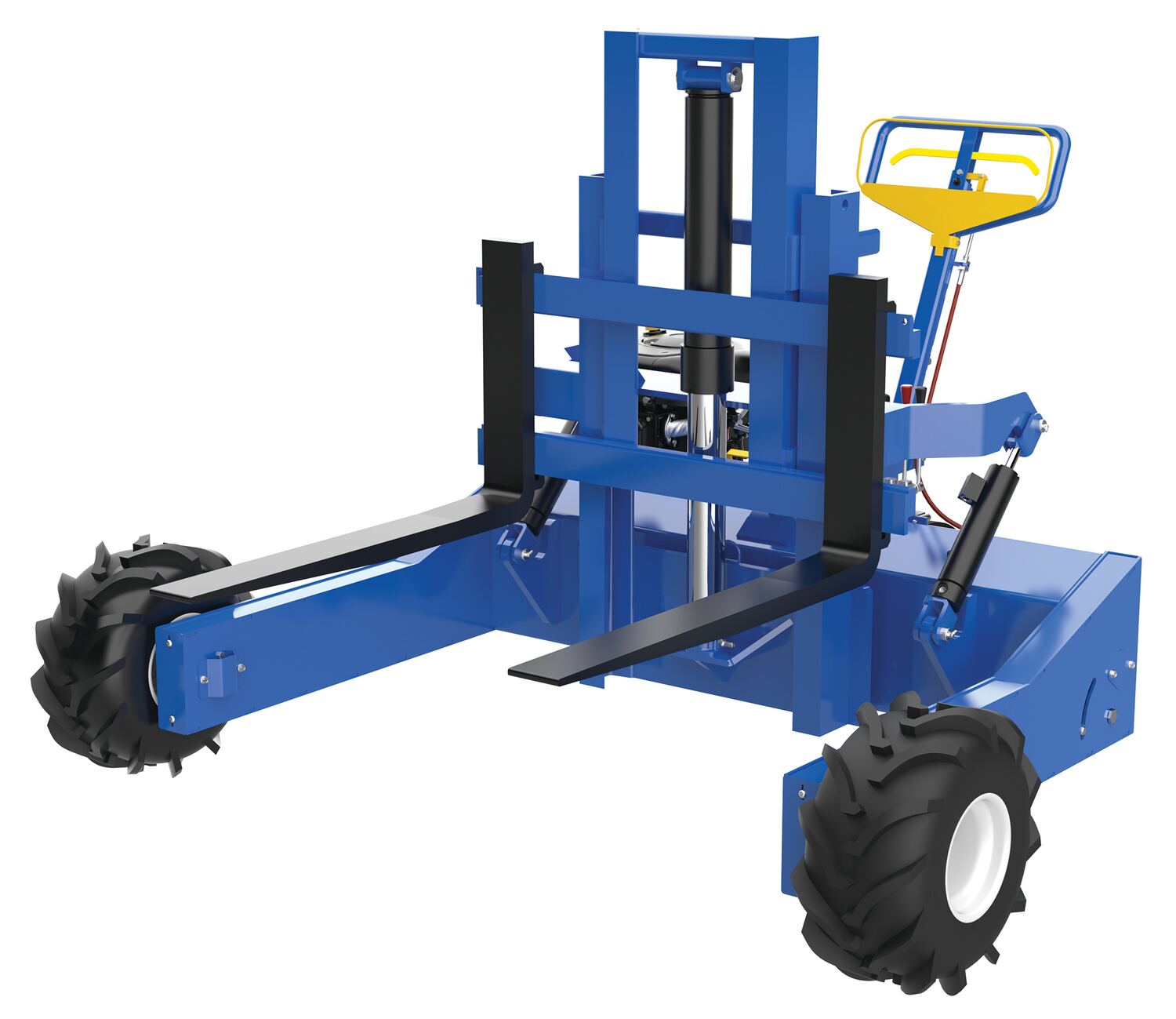 An all-terrain pallet truck with a gas powered drive system is the perfect solution when moving items over uneven surfaces. This pallet truck is great for use at construction sites and landscaping areas. With the use of a tilting fork feature, the products can be positioned to better fit the users needs. The robust steel construction and wide set outriggers enable the transference of items, both large and small. Steering handle includes multiple controls for user safety.